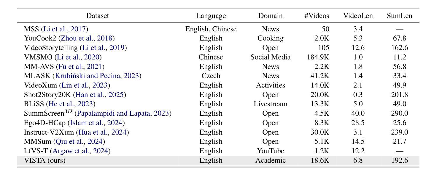 - 该论文引入了专为科学领域视频转文本摘要设计的VISTA数据集,包含AI会议演讲视频和对应的论文摘要。