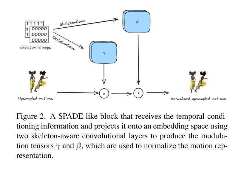 本文介绍了基于单一人类骨骼运动序列训练的生成模型,无需特定骨骼动力学树,动画创作者可在不需要额外数据或大量再训练的情况下生成多种不同的动作。本文主要解决了单动作生成的融合问题,通过时序条件生成过程,实现流畅的动作融合框架。此外,该方法引入了一种骨架感知归一化机制,指导动作之间的过渡,使得动作的融合过程平滑可控。研究还表明该方法能在一套统一的框架中以高效的方式生成可信、平滑且可控的动作融合。