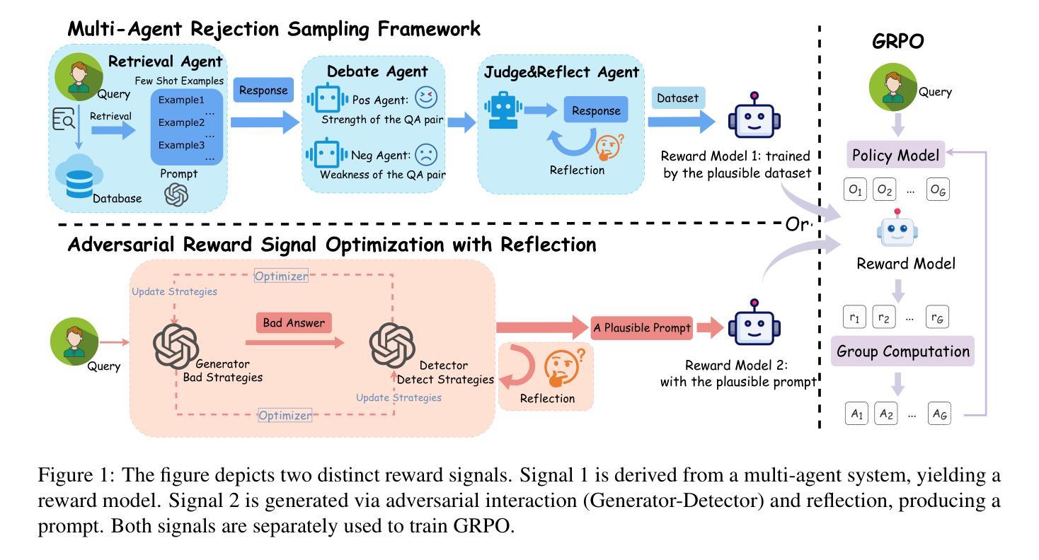 - 第二种策略采用原则指导的LLM-as-a-Judge,通过对抗训练与反思机制优化奖励功能。