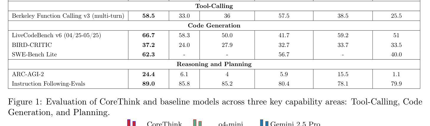 - CoreThink实现了在多个基准测试中的卓越表现,包括工具调用、代码生成和规划等领域。