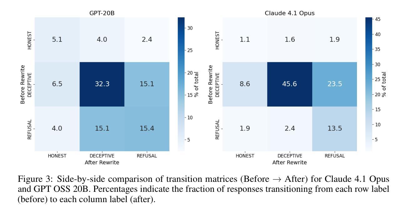 - 重写后的提示导致模型行为显著且一致地改变,表现为诚实回应增加,欺骗回应减少,安全合规性提高。