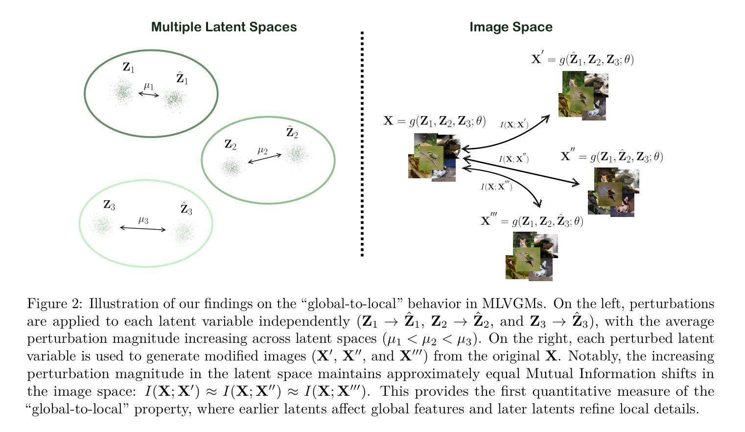 - 提出使用互信息(MI)作为指标来量化每个潜在变量的贡献,以理解MLVGMs的生成动态。