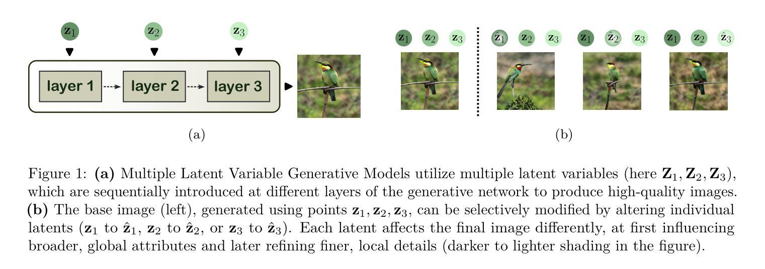 - MLVGMs使用多重潜在变量进行图像生成,从全局特征到局部细节逐渐塑造最终图像。