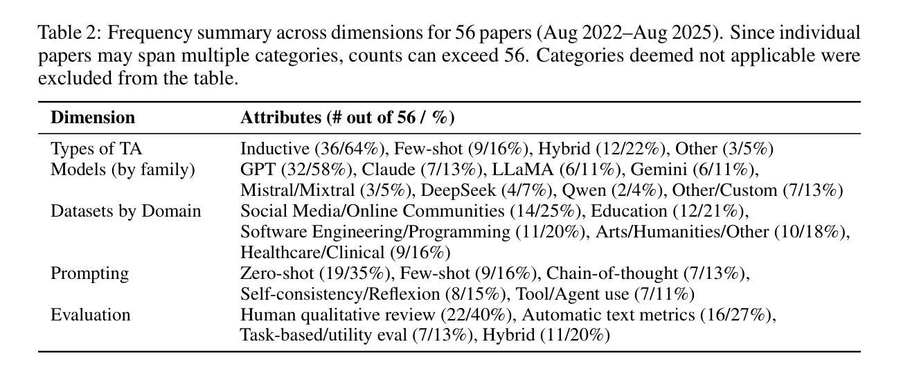 - 当前的方法在多个维度(如主题分析类型、数据集、提示策略和使用的模型)上仍然分散,特别是在评估方面。