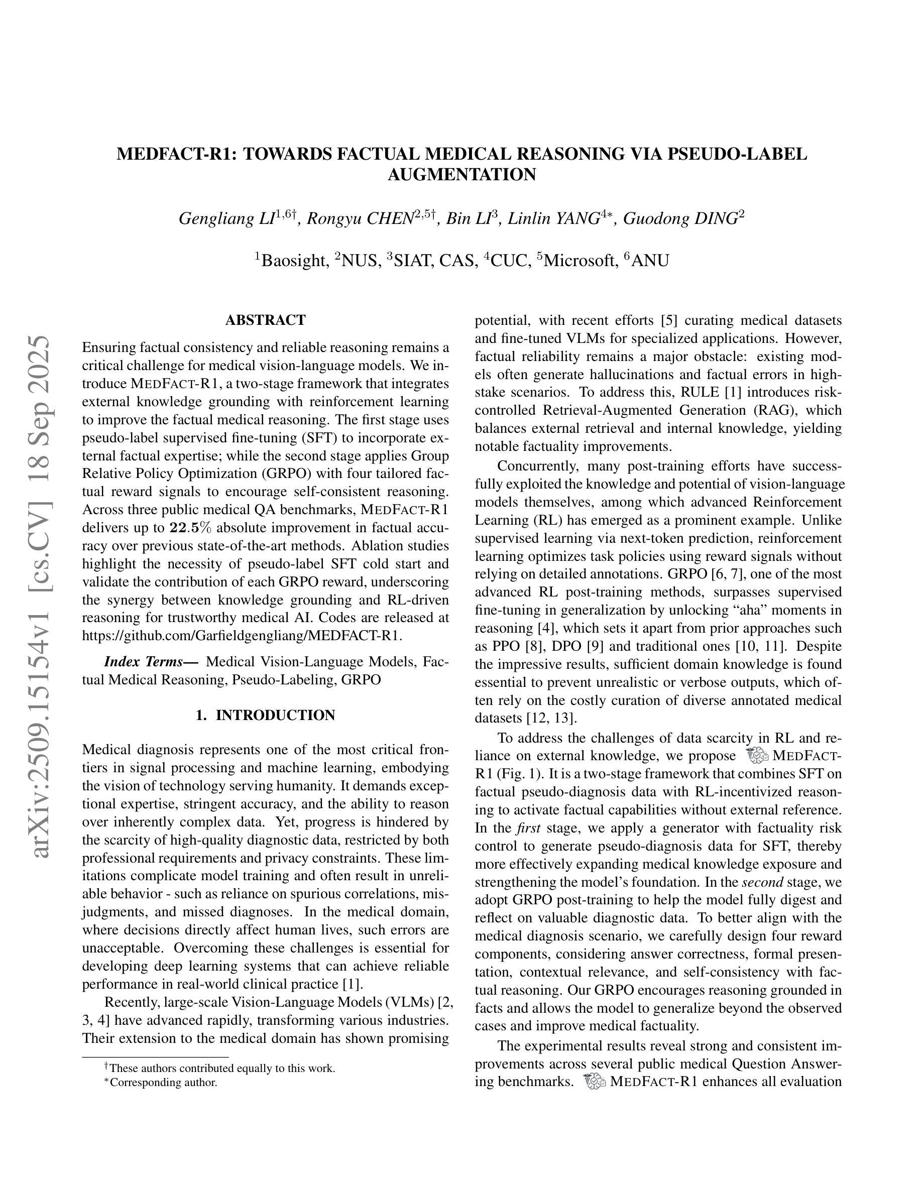 - MEDFACT-R1在三个医学问答基准测试中实现了显著的事实准确性提升。