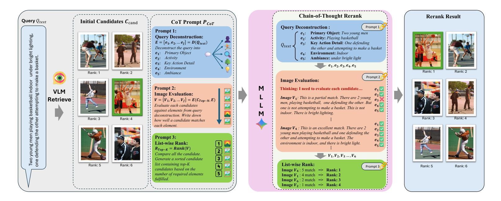 Chain-of-Thought Re-ranking for Image Retrieval Tasks