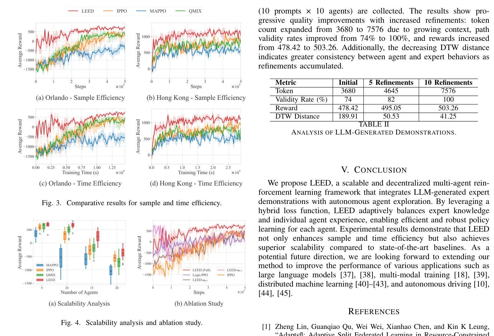 - LEED在样本效率、时间效率和可扩展性方面表现优于现有技术。
