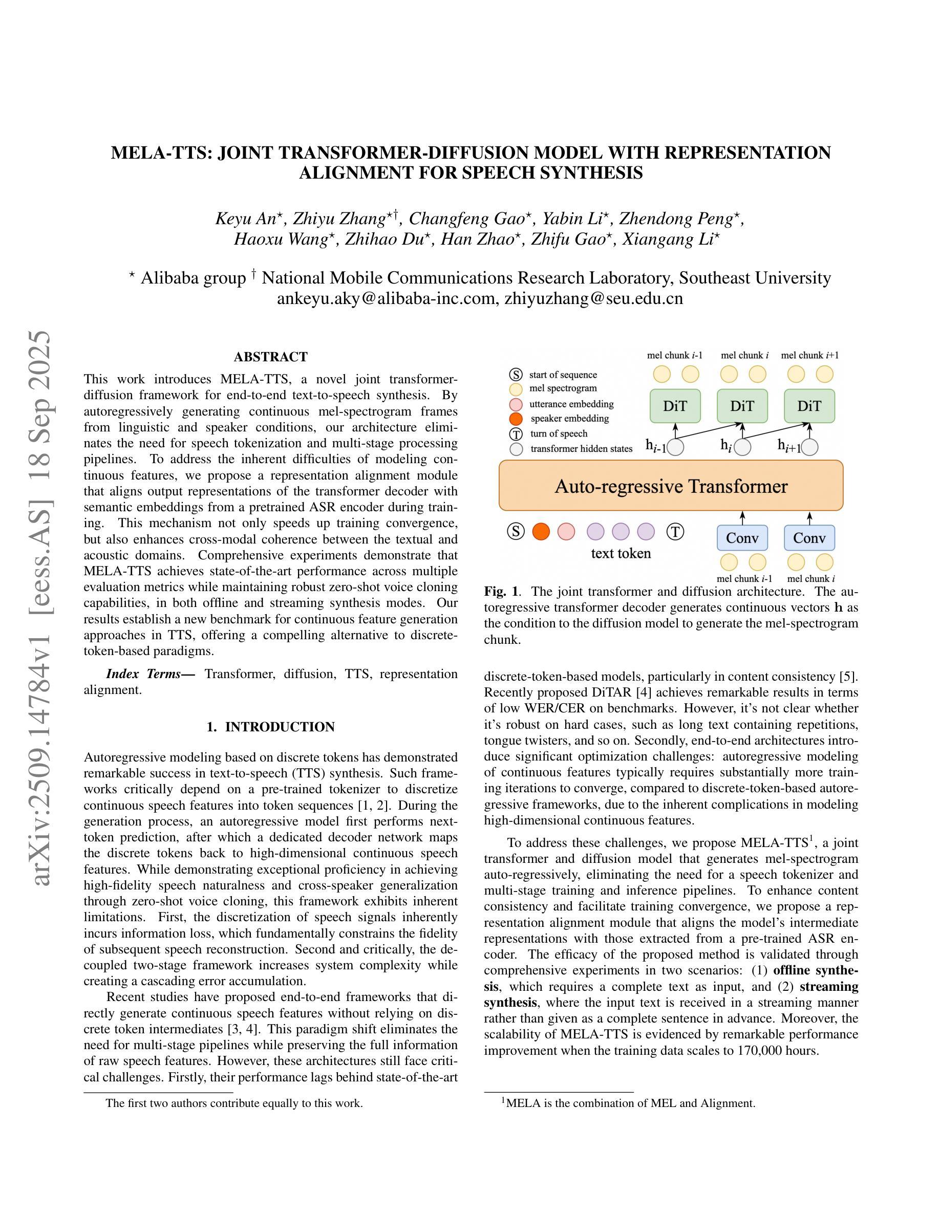 - MELA-TTS是一种新颖的联合transformer-diffusion框架,用于端到端的文本到语音合成。