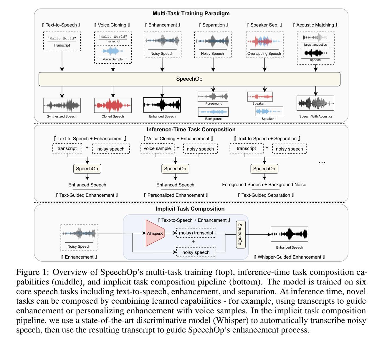 - SpeechOp能够执行多种语音任务,并在推理时间以新颖的方式组合它们。