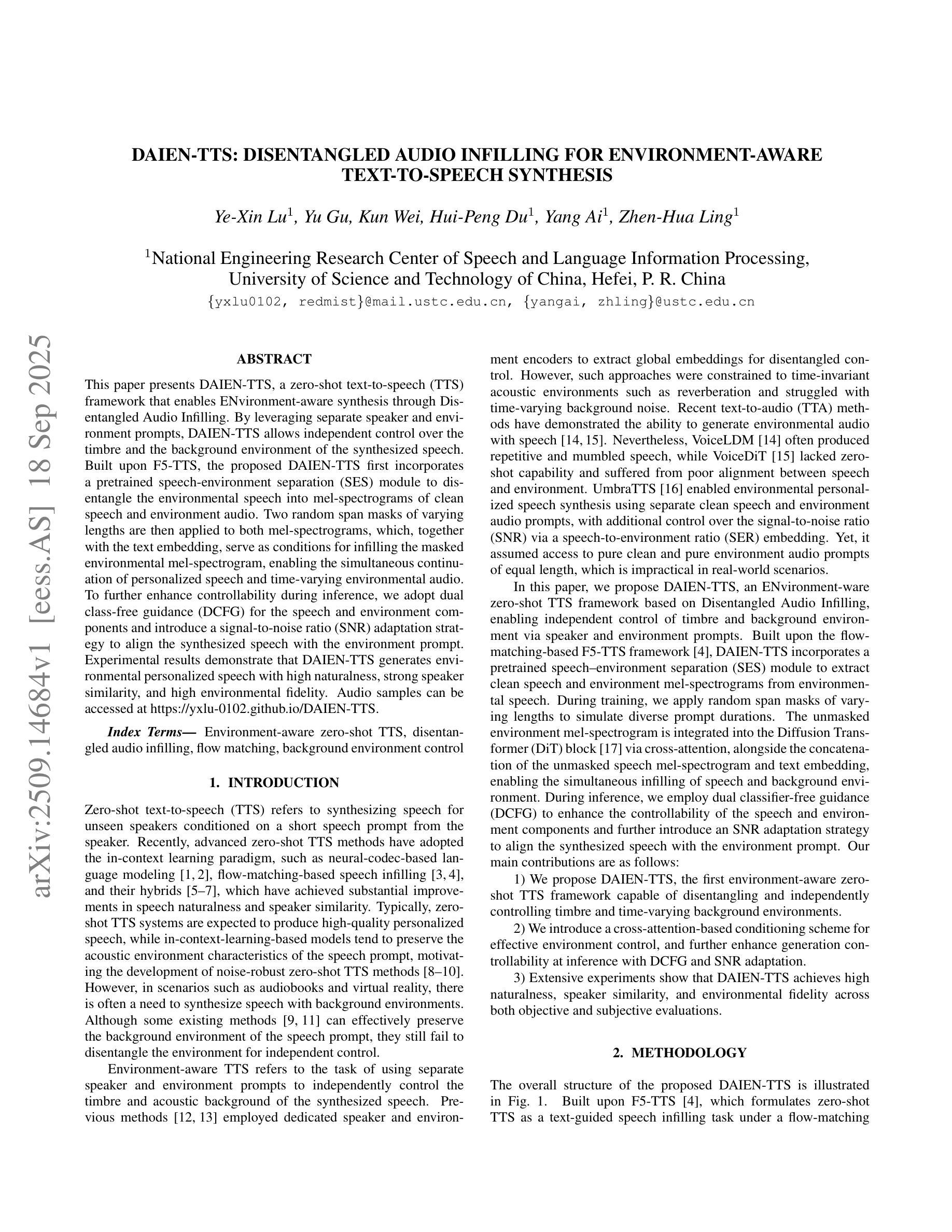 - DAIEN-TTS是一种零样本文本转语音(TTS)框架,具备环境感知合成功能。