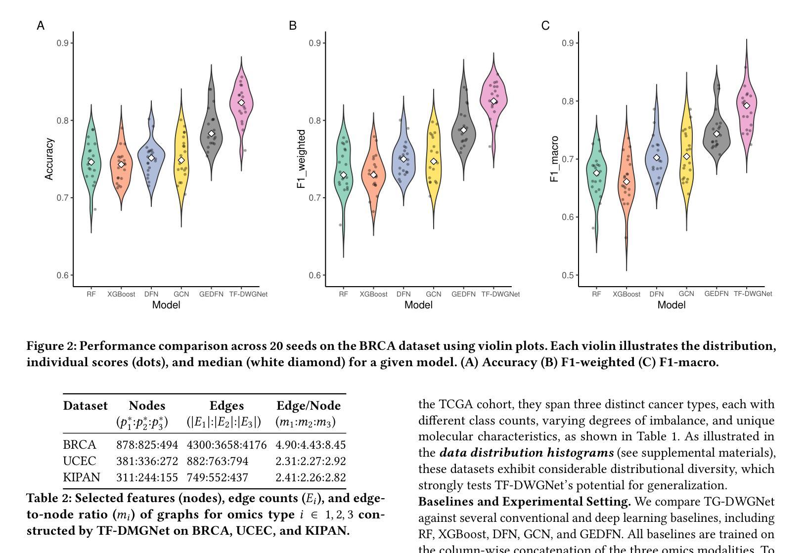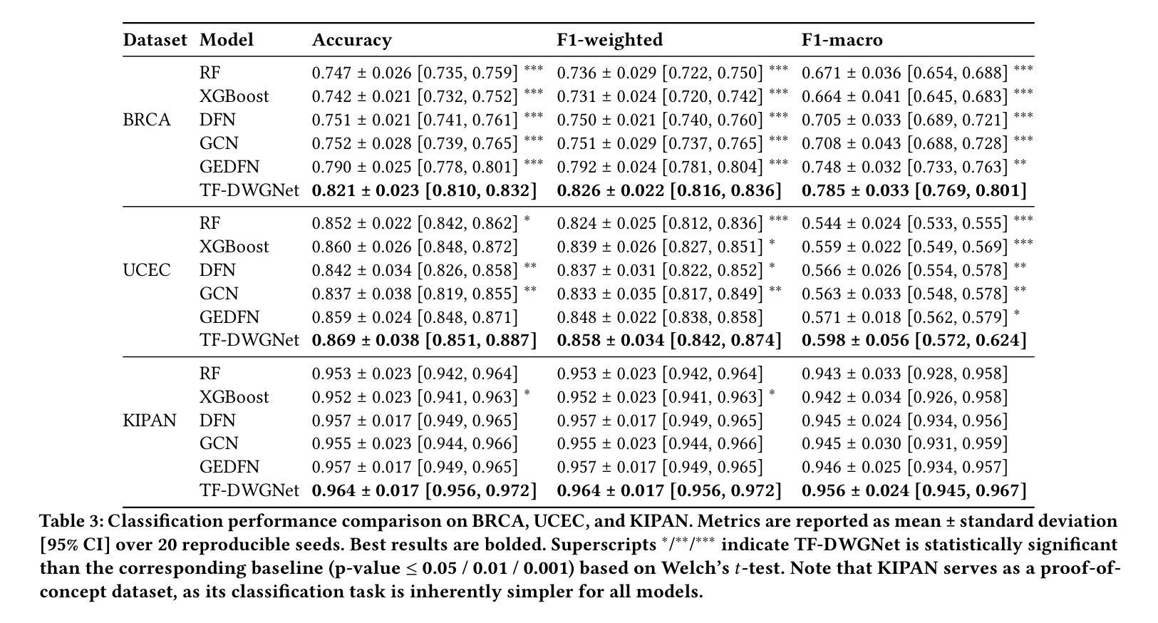 - 在真实世界癌症数据集上的实验表明,TF-DWGNet的表现优于现有技术。