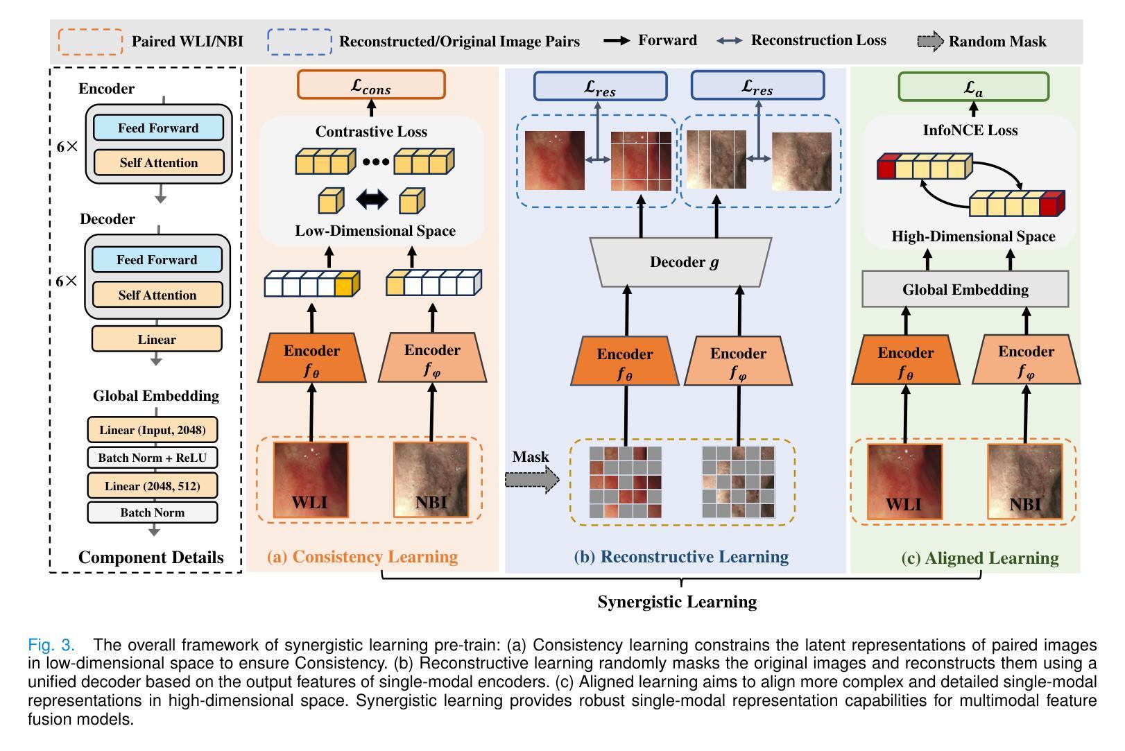 - 协同学习预训练框架包括一致性、重建和对接学习,提高模型特征表示能力。