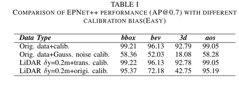 - 本文系统地评估了EPNet++检测框架的敏感性,并指出轻微校准偏差即可严重影响性能。