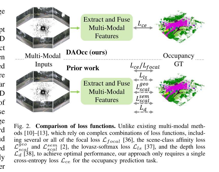 多传感器融合显著提高了3D语义占用预测的准确性和鲁棒性,这对于自动驾驶和机器人技术至关重要。然而,大多数现有方法依赖高分辨率图像和复杂网络来实现最佳性能,这阻碍了它们在实践场景中的应用。此外,当前的多传感器融合方法主要集中在改进特征融合上,而很大程度上忽视了这些特征的有效监督策略。为了解决这些问题,我们提出了DAOcc,这是一个新型的多模式占用预测框架,它利用3D对象检测监督来帮助实现卓越性能,同时使用部署友好的图像主干和实用的输入分辨率。此外,我们还引入了BEV View Range Extension策略,以缓解因较低图像分辨率导致的性能下降。大量实验表明,DAOcc在Occ3D-nuScenes和Occ3D-Waymo基准测试上达到了最新水平的结果,并且仅使用ResNet-50主干和256*704输入分辨率的情况下,显著超越了以前的最先进方法。通过TensorRT优化,DAOcc在NVIDIA RTX 4090 GPU上达到了104.9 FPS的帧率,同时保持了54.2 mIoU的性能。相关代码可访问https://github.com/AlphaPlusTT/DAOcc获取。