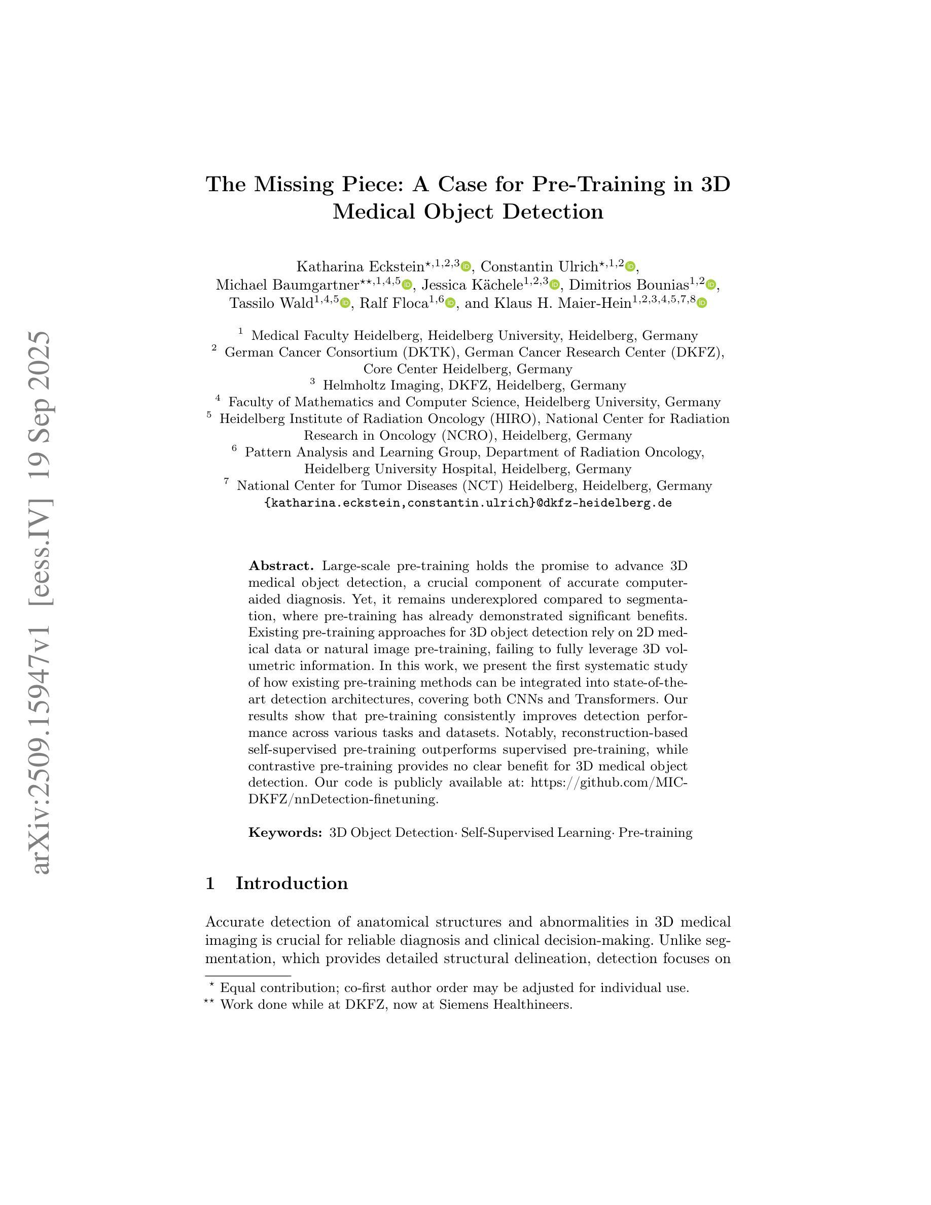 - 大型预训练对提升3D医疗目标检测至关重要。