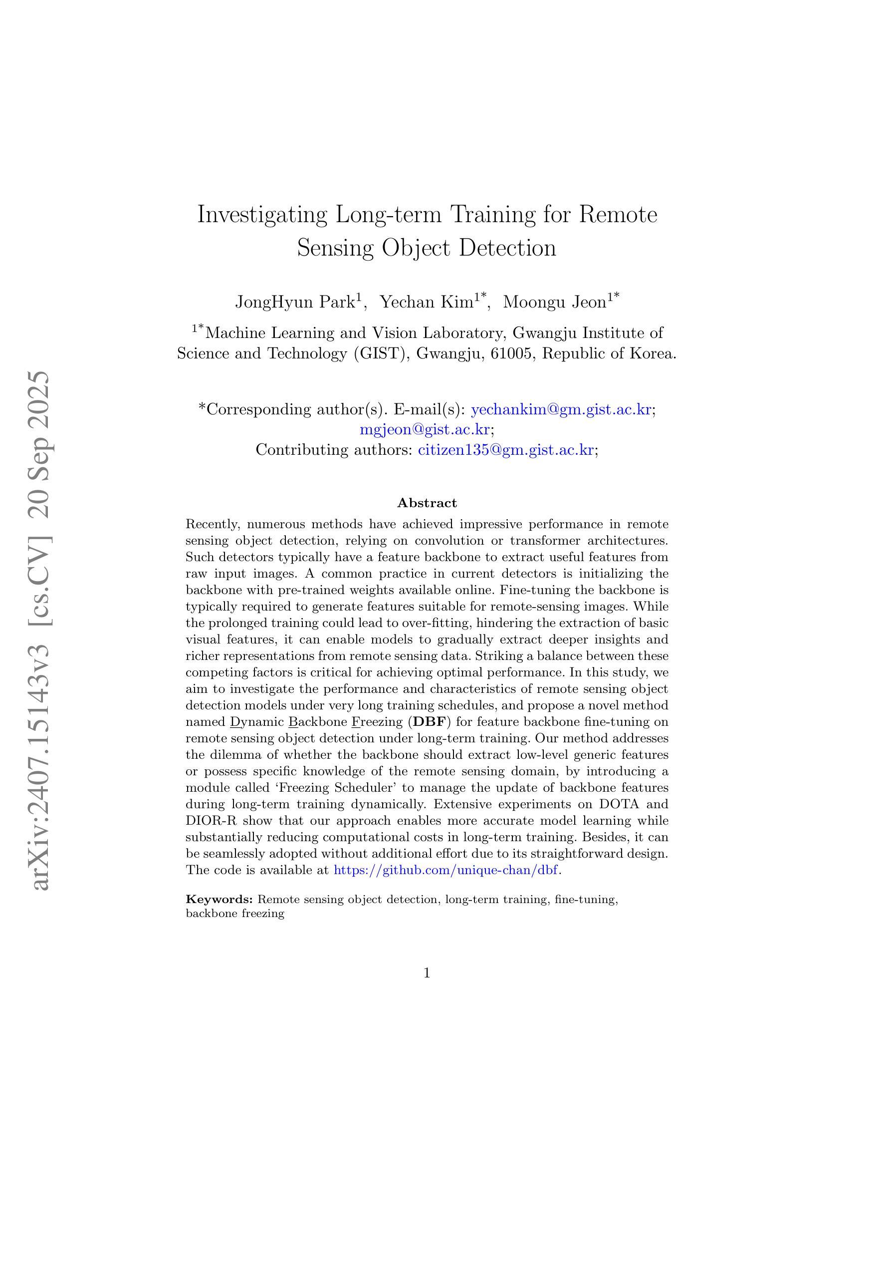 - 研究旨在解决遥感目标检测模型在长期训练下的性能问题,并提出动态主干冻结(DBF)方法。