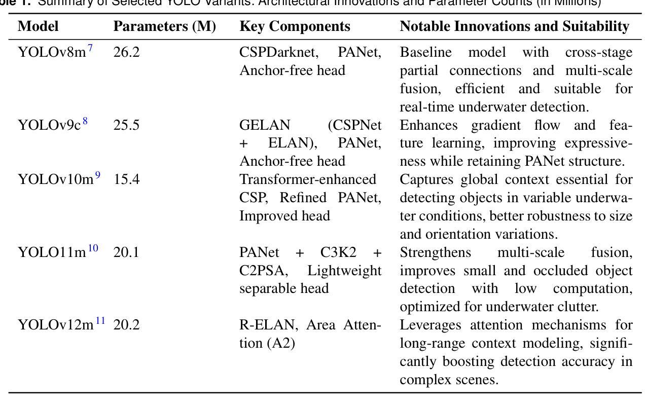 - YOLOv12在水下环境中整体性能最佳,但在噪声干扰方面存在较高脆弱性。