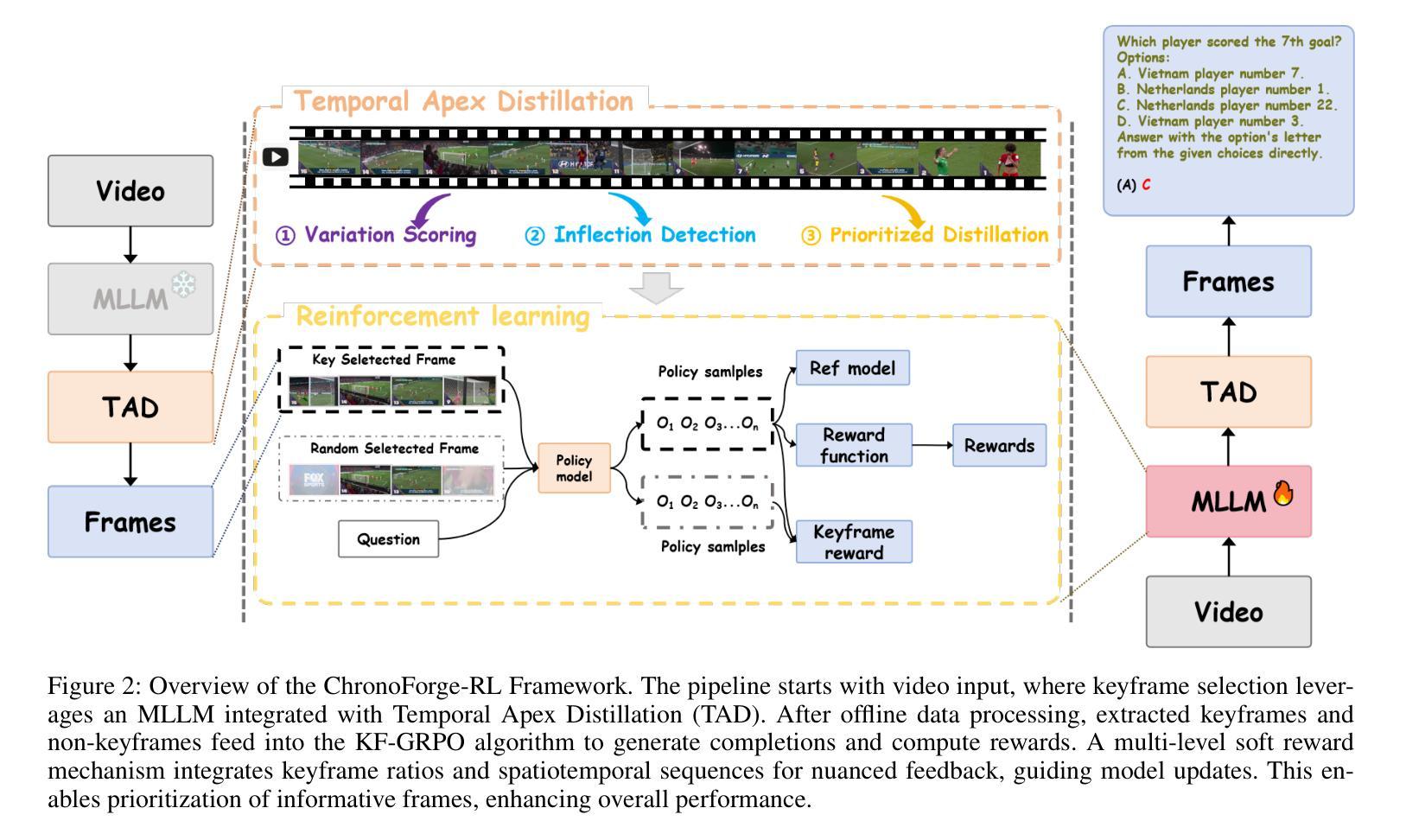 - ChronoForge-RL框架结合了Temporal Apex Distillation(TAD)和KeyFrame-aware Group Relative Policy Optimization(KF-GRPO)两大模块来解决这些问题。