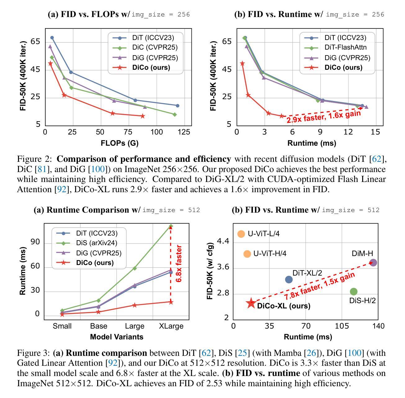- 仅使用卷积网络构建的Diffusion ConvNet(DiCo)具有强大的生成性能。