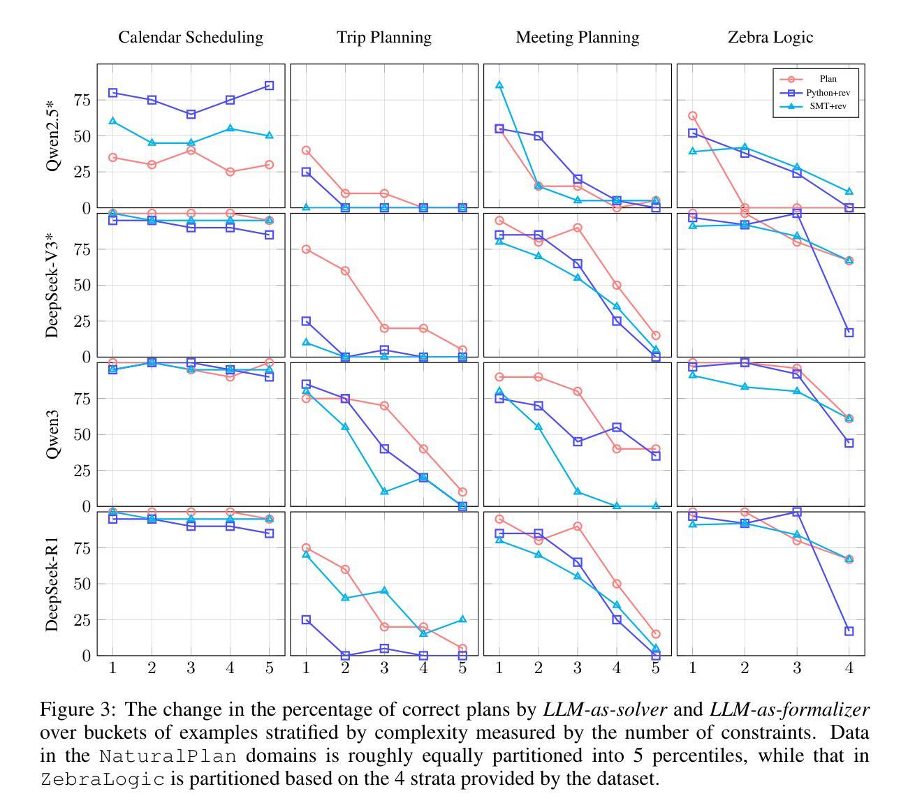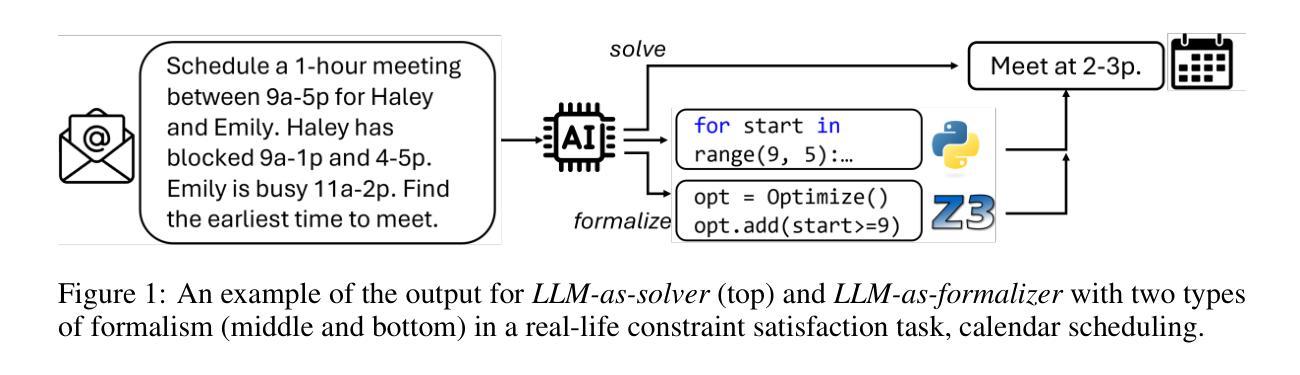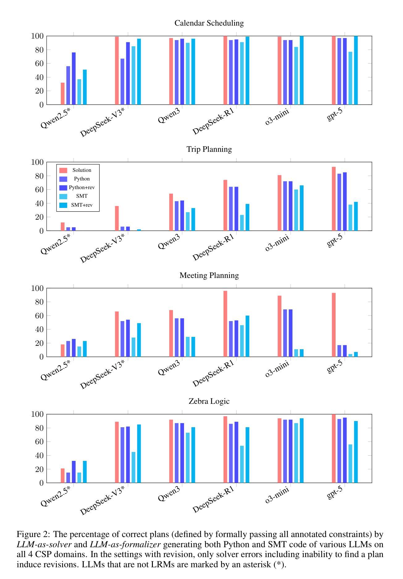 - 在现实生活中的约束满足问题上,LLM作为形式化工具的优势并不显著。