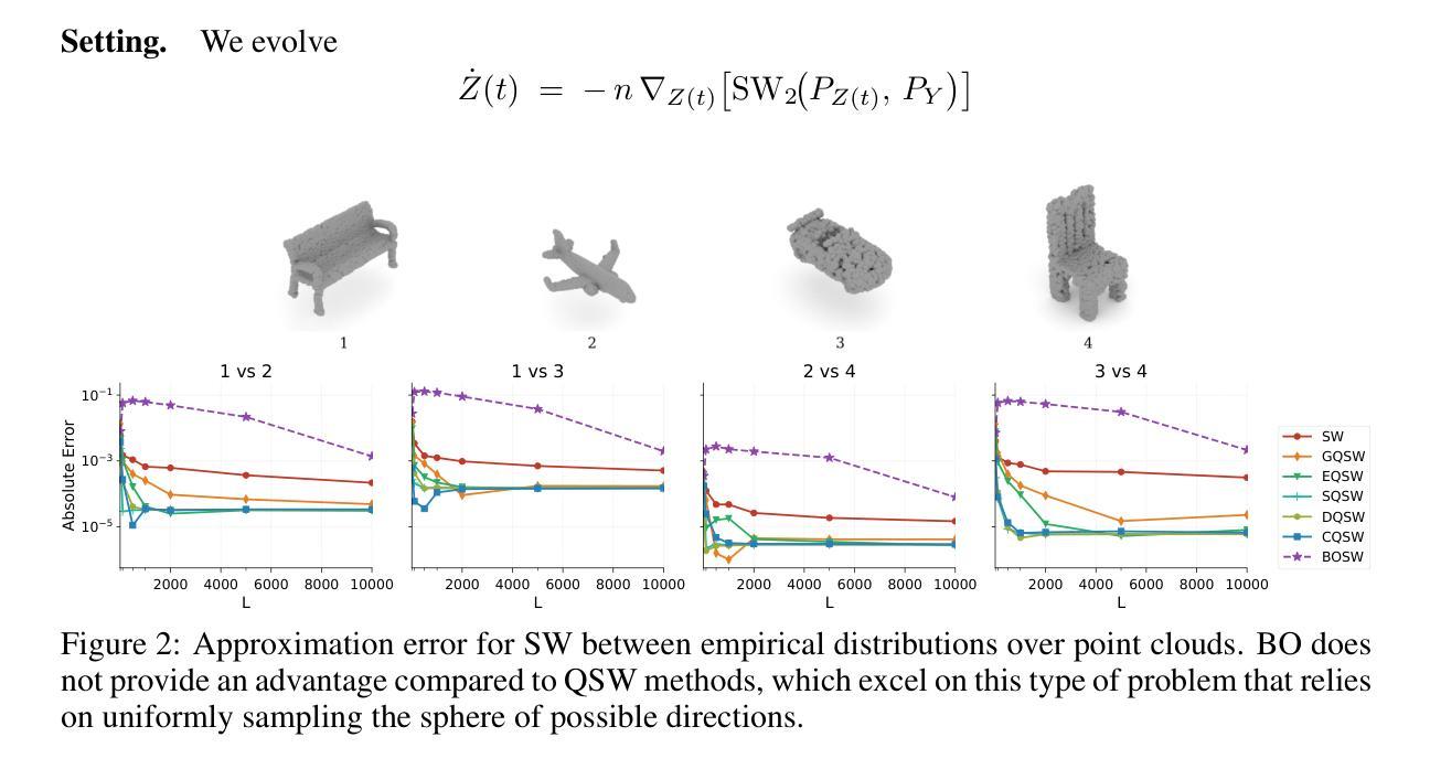 - 提出一种新型方法:结合贝叶斯优化(BO)学习方向,用于更复杂场景如梯度流中的SW优化循环。