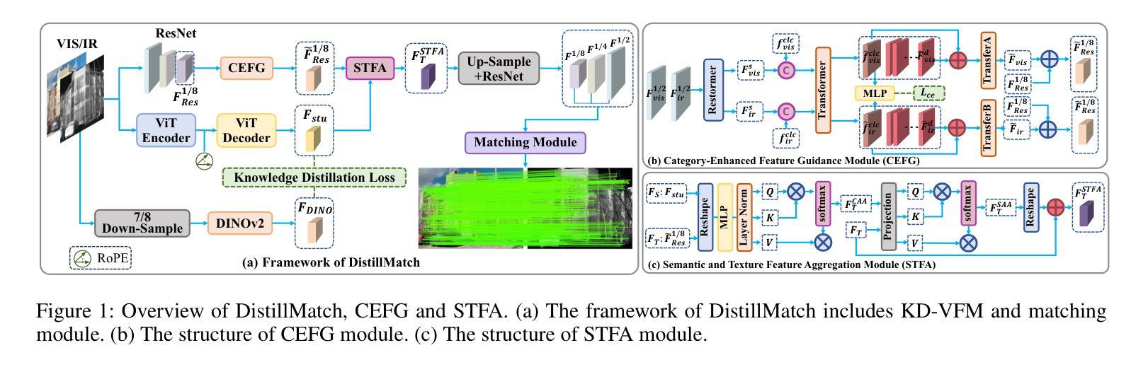 - DistillMatch方法利用知识蒸馏技术从VFM构建轻量级学生模型进行跨模态匹配。
