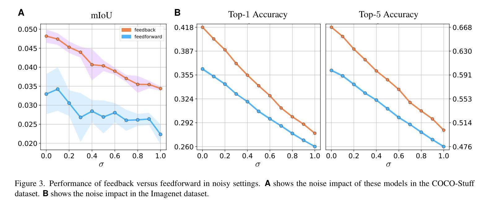 深度学习反馈模型(DFMs)是一类新型的有状态神经网络,通过结合自下而上的输入和高级表示的时间序列,引入了动态机制。这种反馈机制使DFMs能够迭代地优化其内部状态并模拟生物决策制定的某些方面。建模为微分方程,通过递归神经网络解决,并通过指数衰减实现稳定以确保收敛。在对象识别和分割任务中,特别是在低数据或高噪声条件下,DFMs的表现优于前馈模型。此外,DFMs在医学成像环境中具有广泛的应用前景,对各种噪声干扰具有鲁棒性。这些发现凸显了反馈在实现稳定、健壮和可泛化的学习中的重要性。