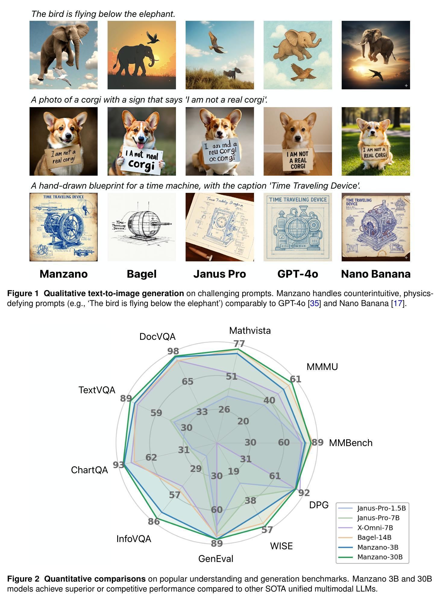 - Manzano在统一模型中实现了最先进的成果,并在某些评估中与专业模型竞争。