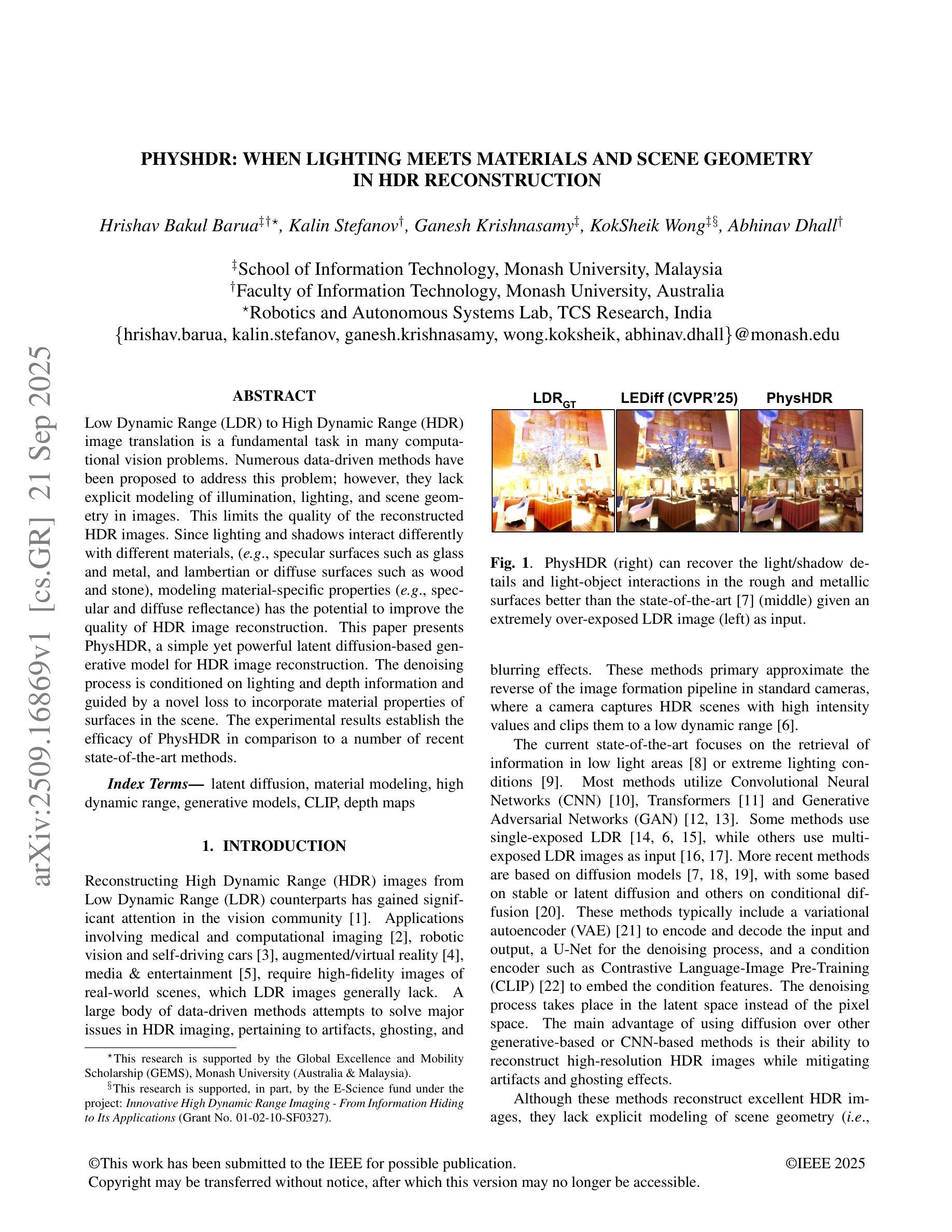 - PhysHDR是一种基于潜在扩散生成模型的简单而强大的HDR图像重建方法。