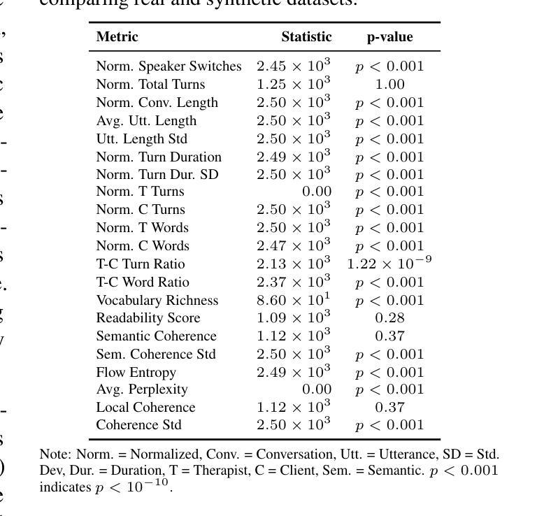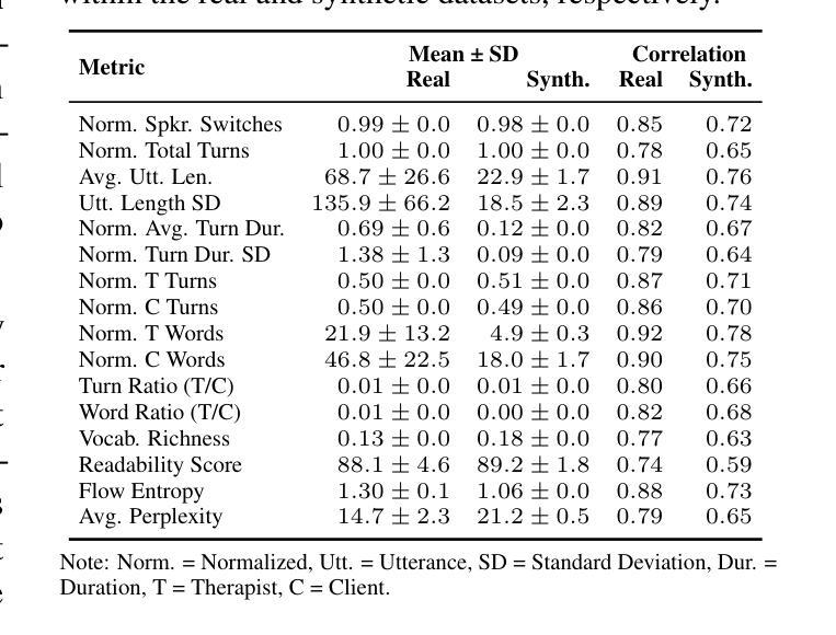 - 合成对话成功复制了真实对话的主要语言特征,但关键忠实度指标如压力监测等方面存在差异。