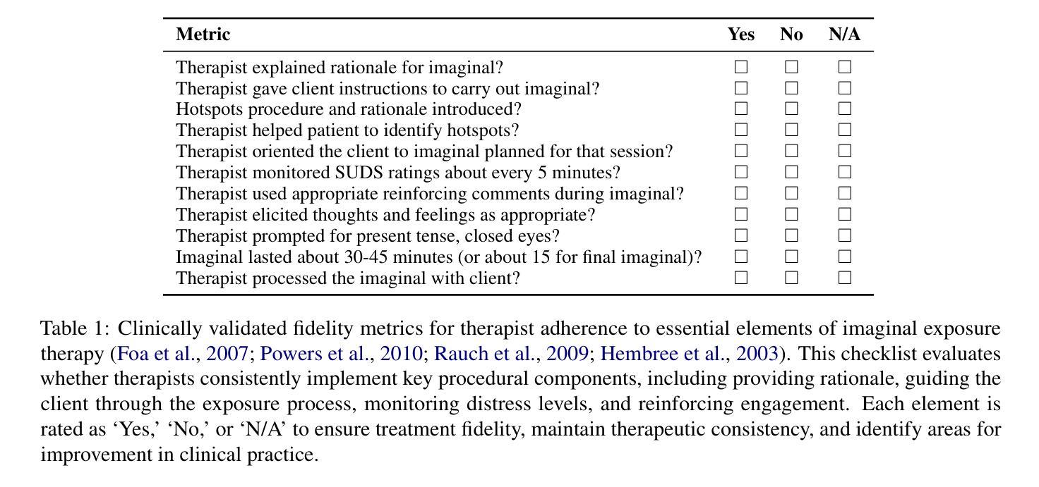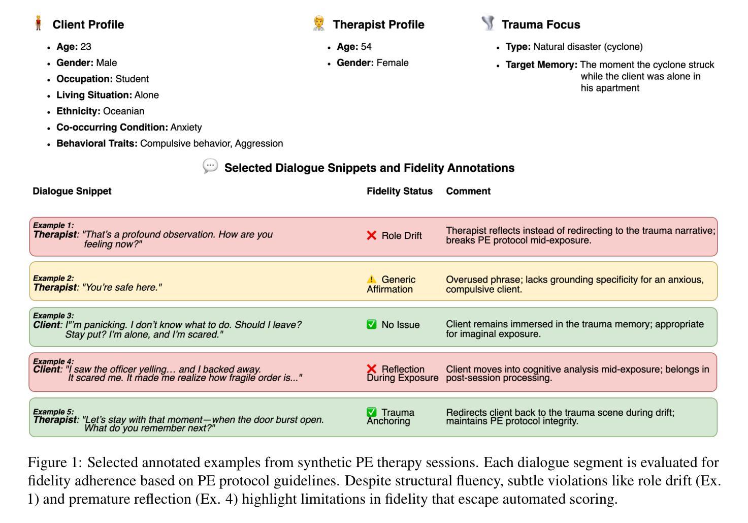 - 合成延长暴露(PE)疗法对话作为一种可扩展的替代方案被探索,用于训练临床模型。