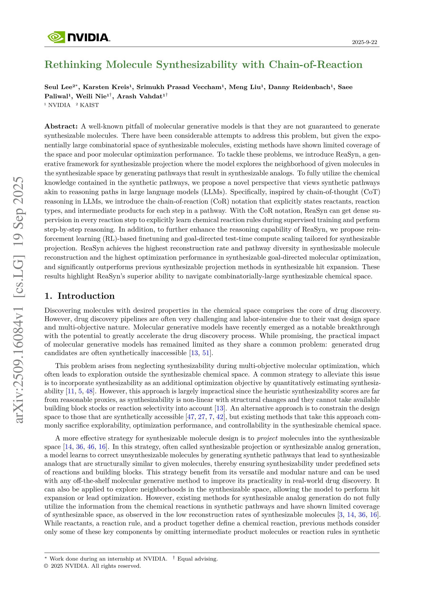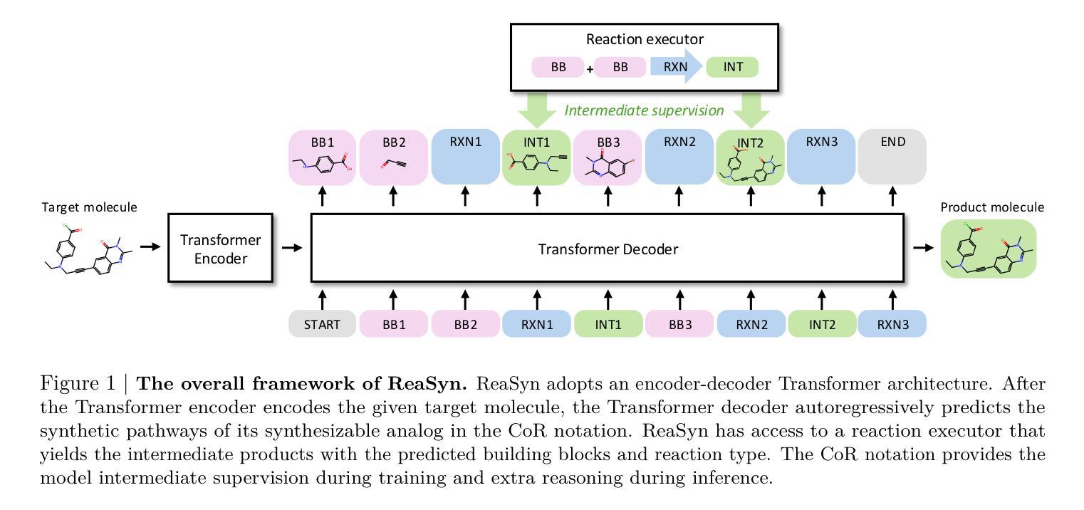 - ReaSyn是一个用于合成投影的生成框架,解决了分子生成模型可能无法生成可合成分子的问题。