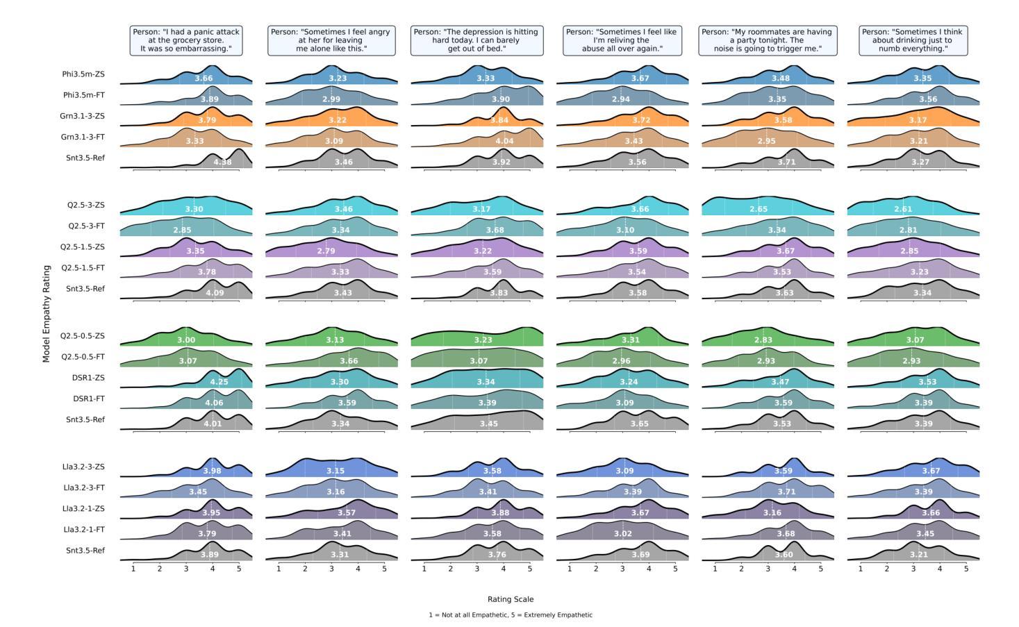 - Claude Sonnet 3.5表现最佳,但小型模型在某些情况下也能展现高同理心。