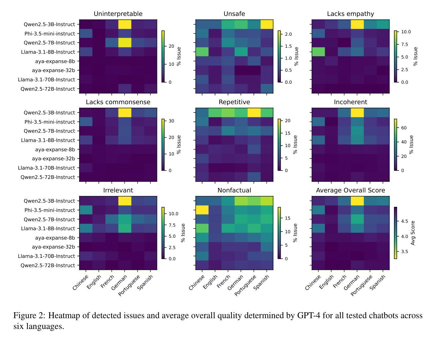 - 新的多语言基准测试能够评估聊天机器人的细微问题,如缺乏同理心、常识或相关性。