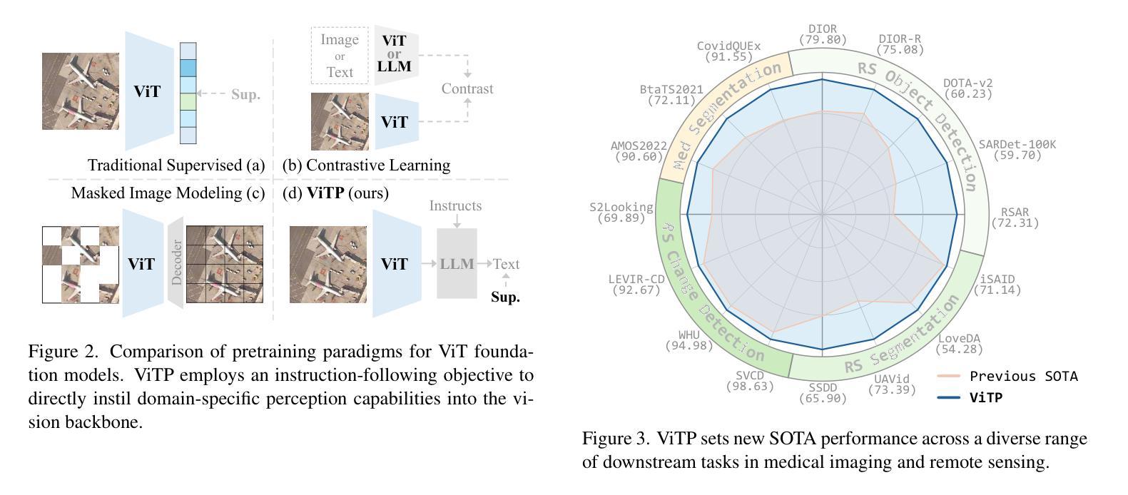 - 在多个基准测试中,ViTP表现出卓越性能,特别是在远程感应和医学影像领域。