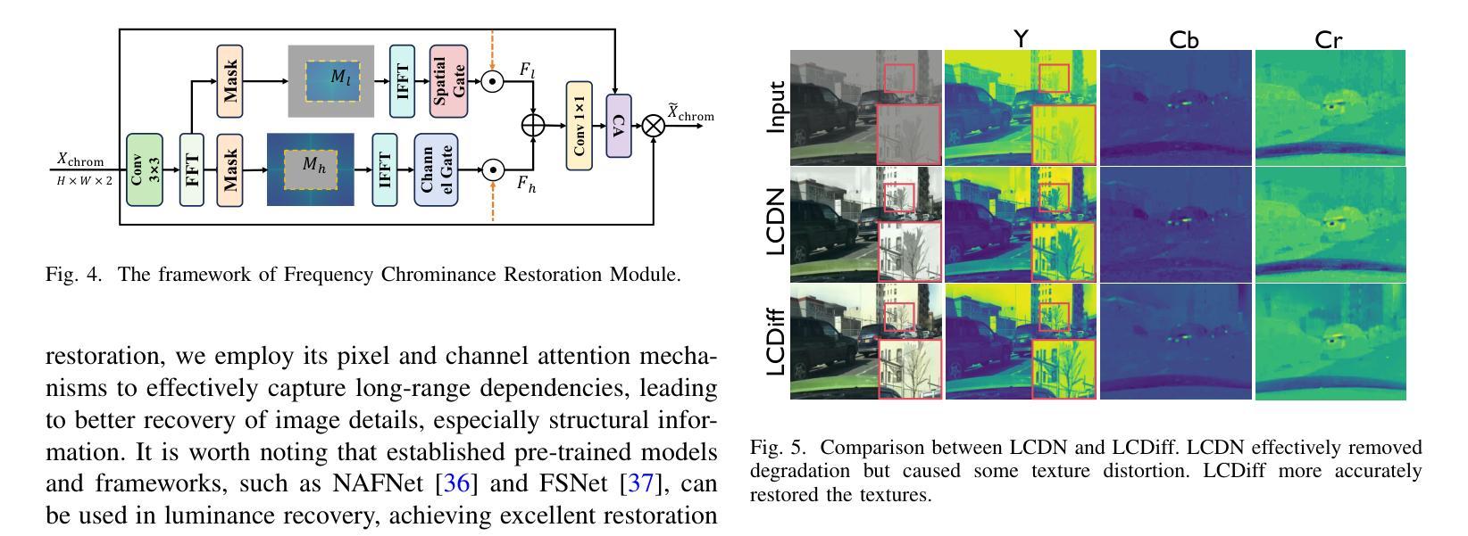 - LCDN在YCbCr色彩空间处理图像,分离亮度和色度成分,以提高恢复效果。