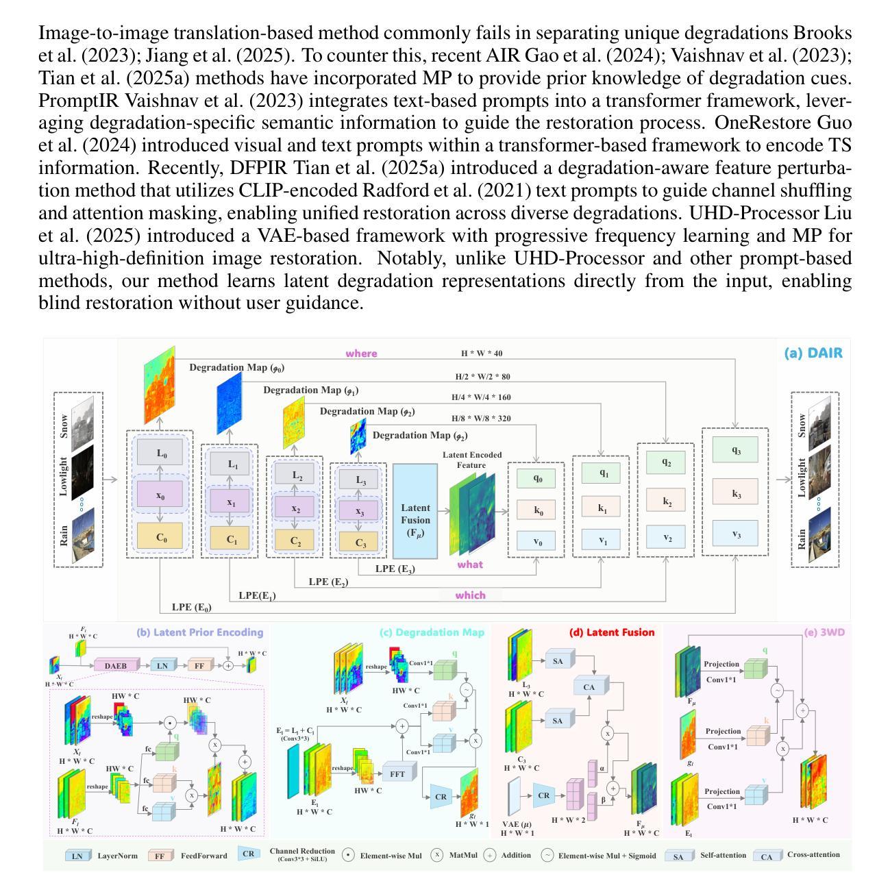 - 将图像恢复制定为结构化推理模式,包括特征路由、恢复位置和退化语义。