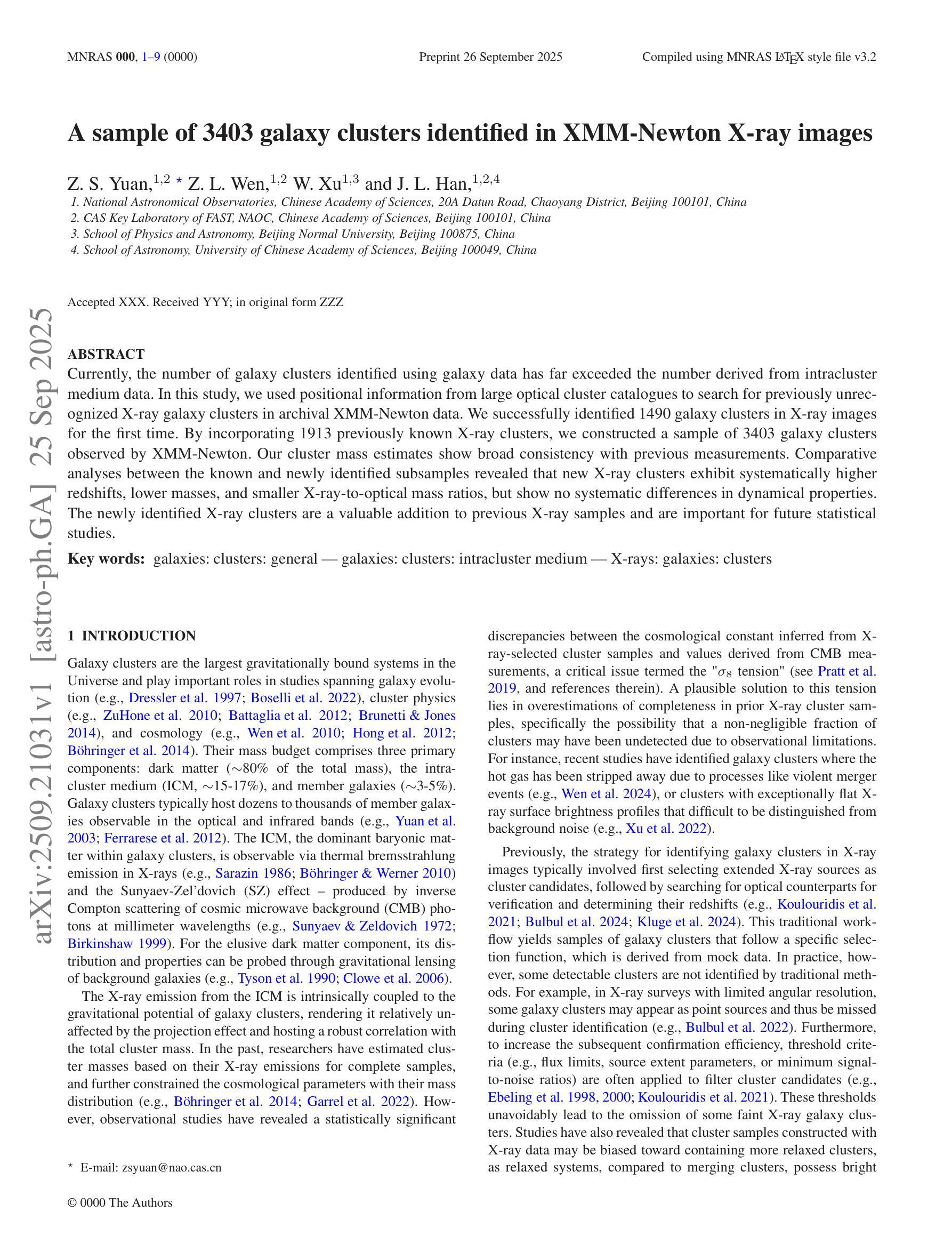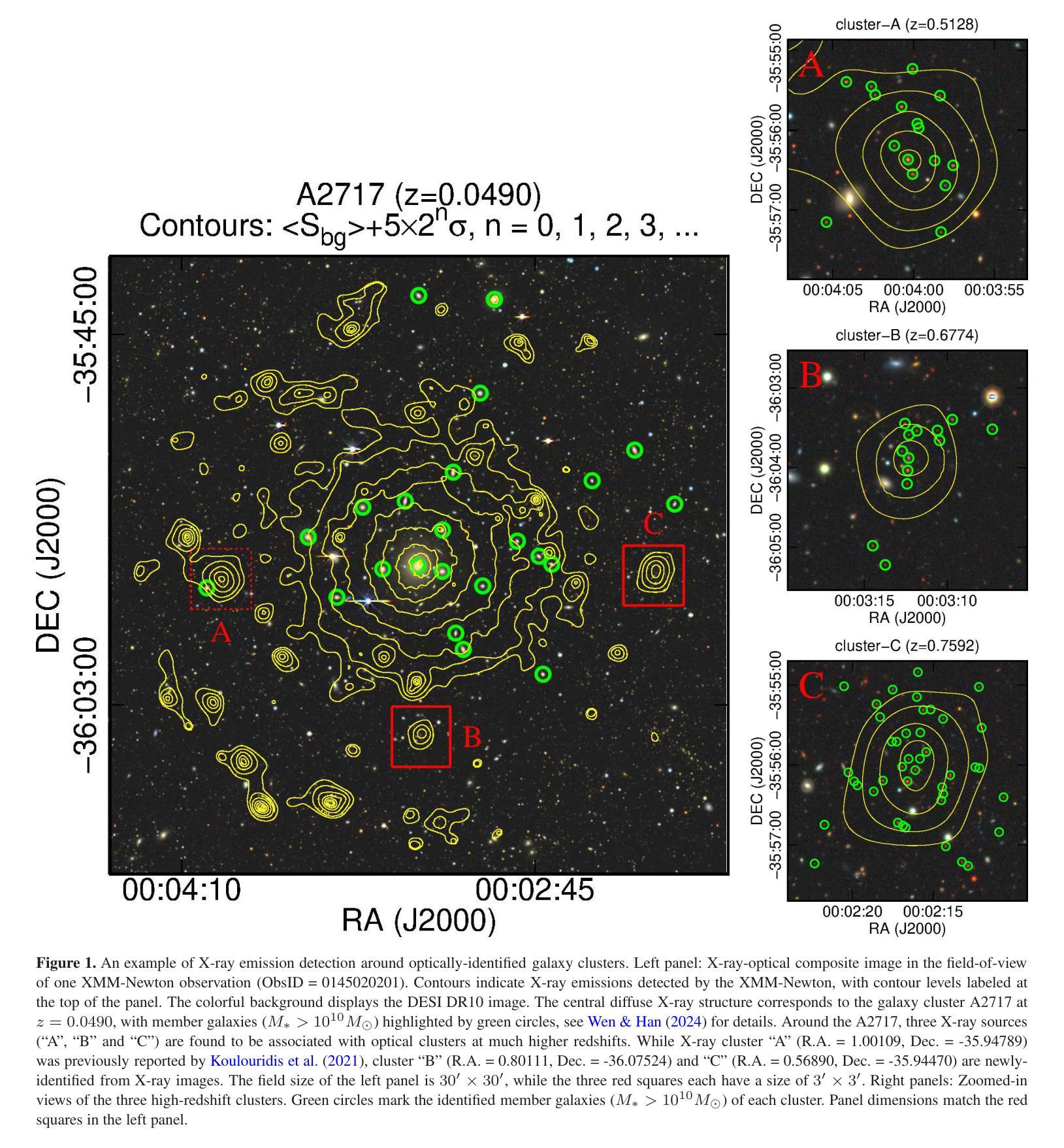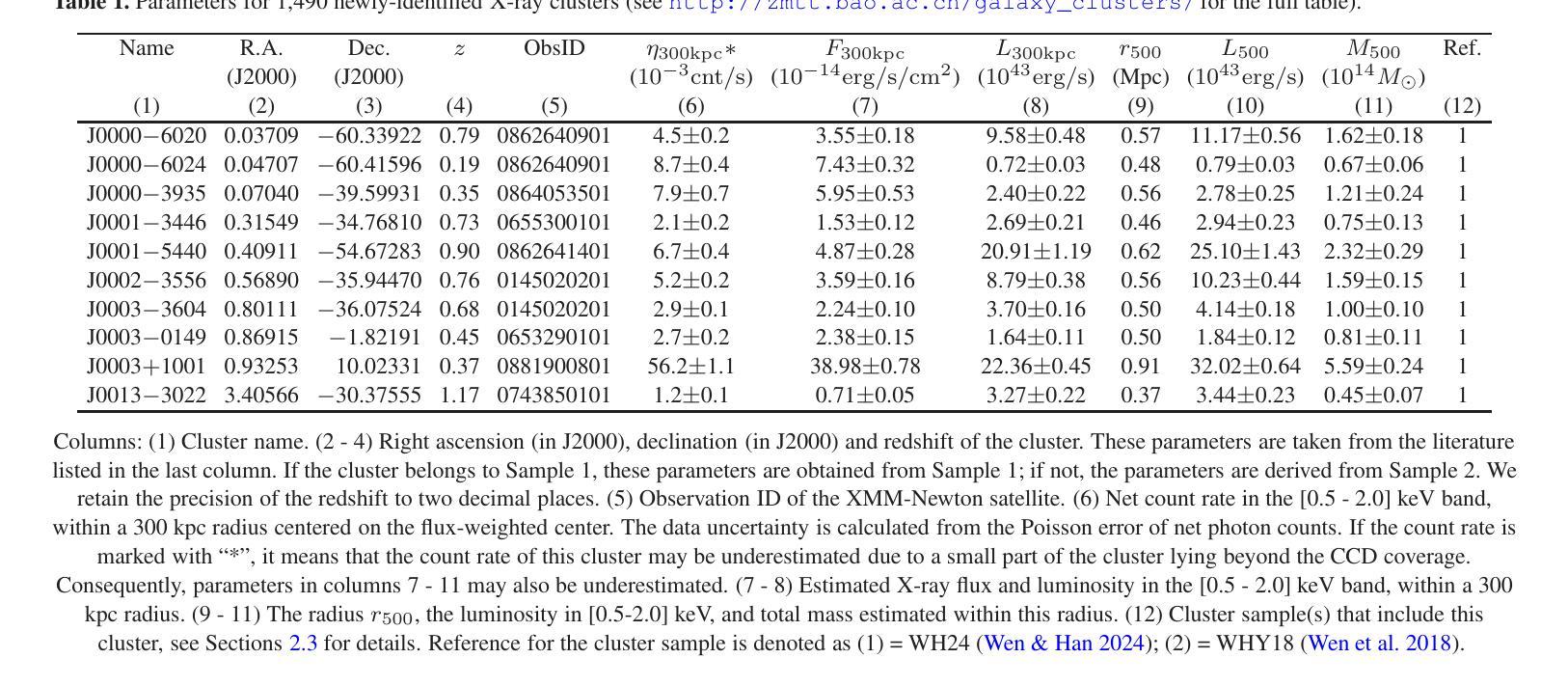 - 研究使用光学集群目录的位置信息在XMM-Newton存档数据中成功识别出1490个新的X射线星系团。
