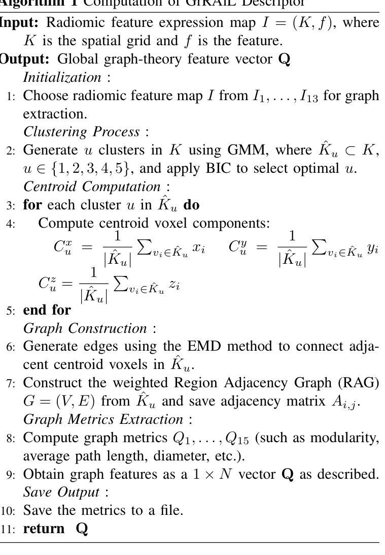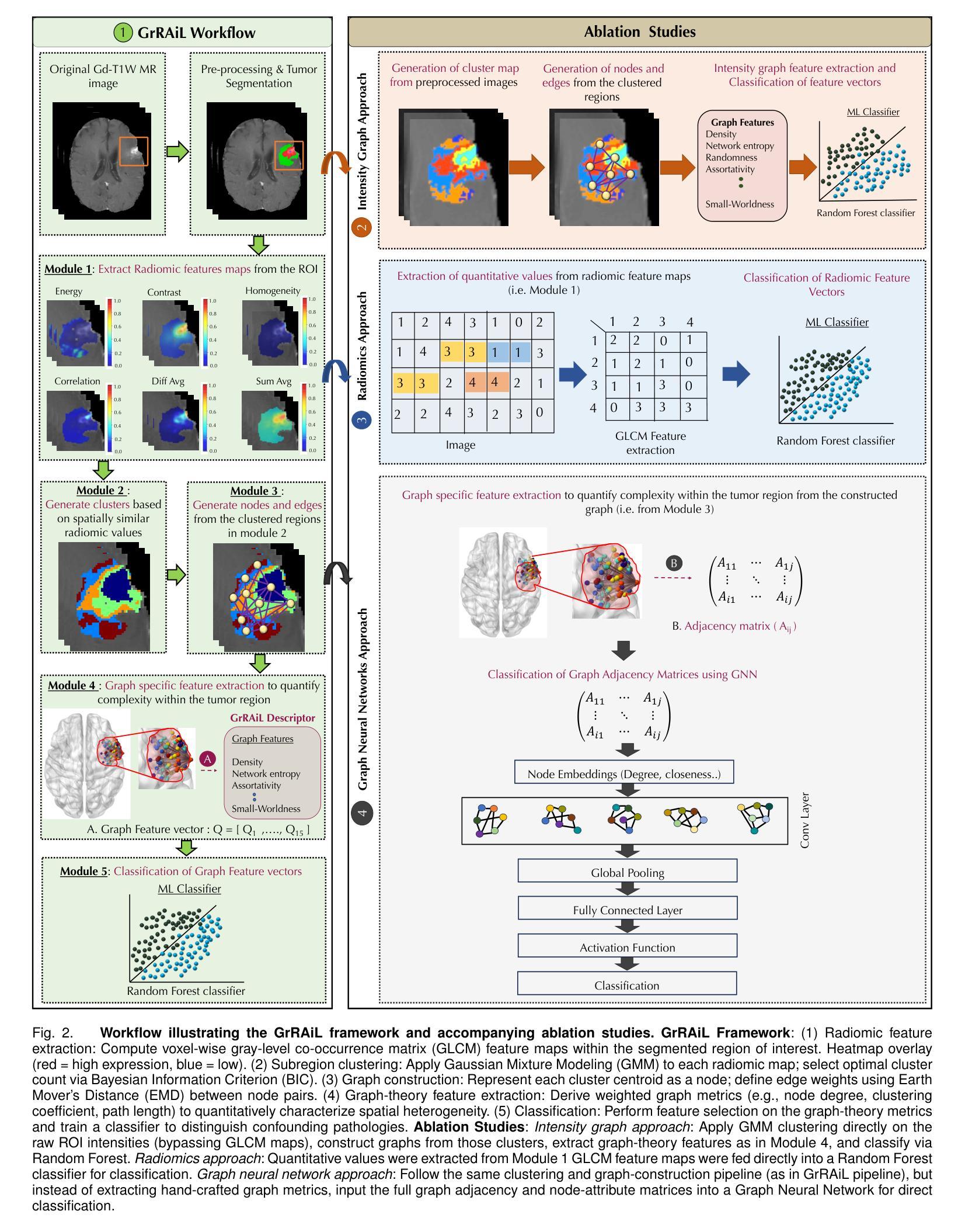 - Graph-Radiomic Learning (GrRAiL) 描述符用于表征临床MRI扫描中的病灶内异质性(ILH)。