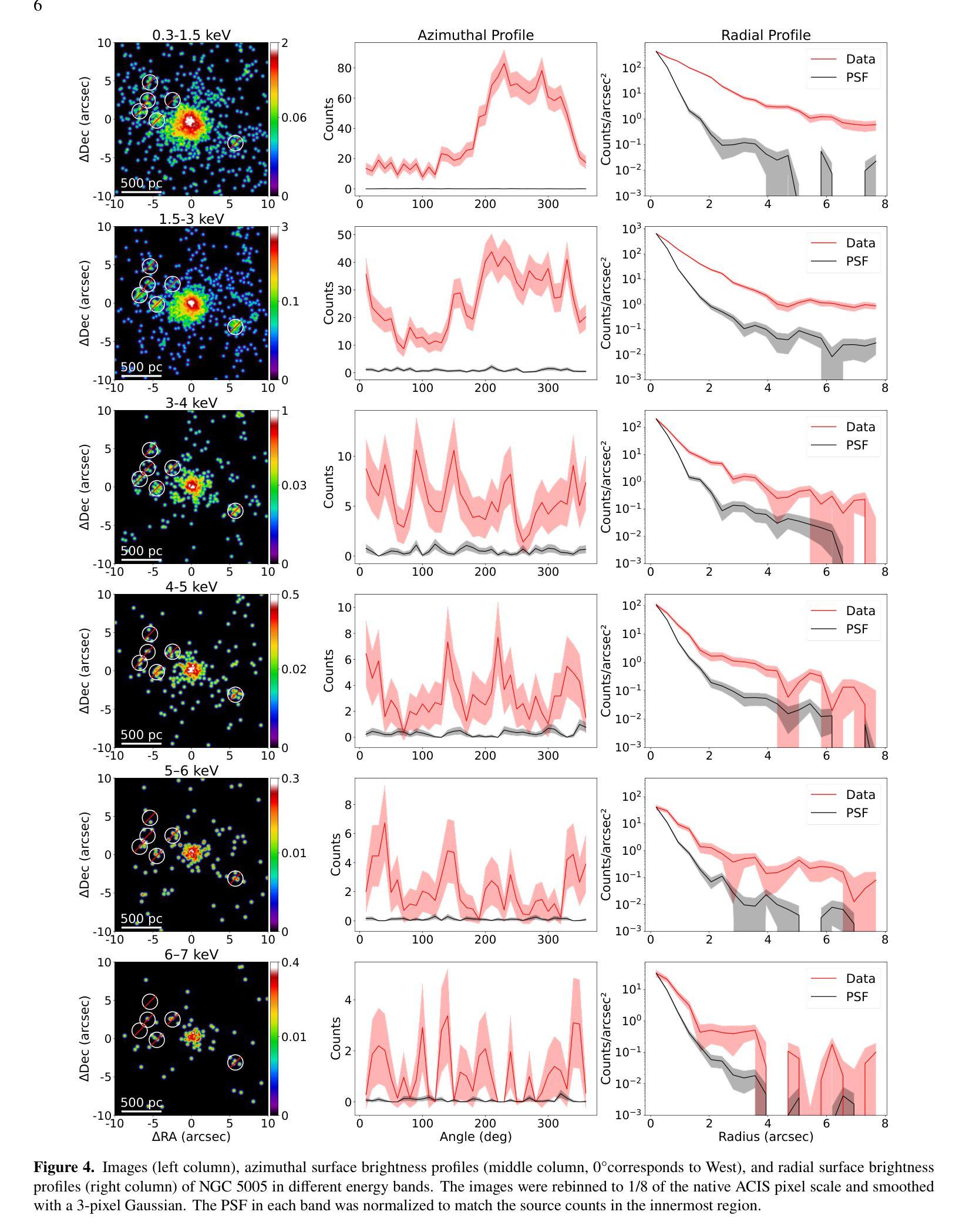 - NGC 5005的深层钱德拉X射线观测发现其X射线发射包括弥散软X射线发射和更集中的硬发射。