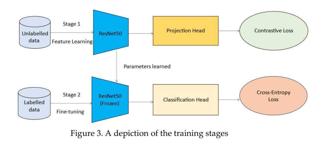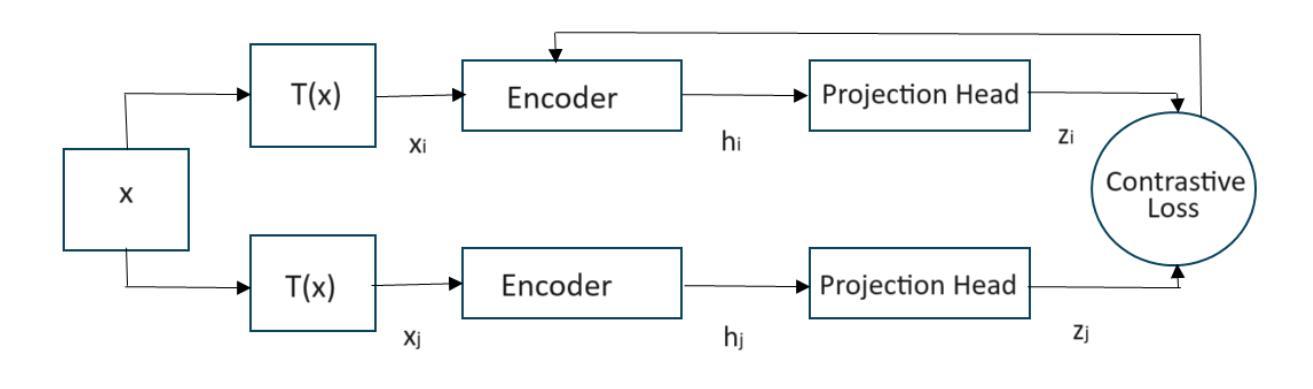 - 模型使用可学习的投影头将表示投影到共享嵌入空间。
