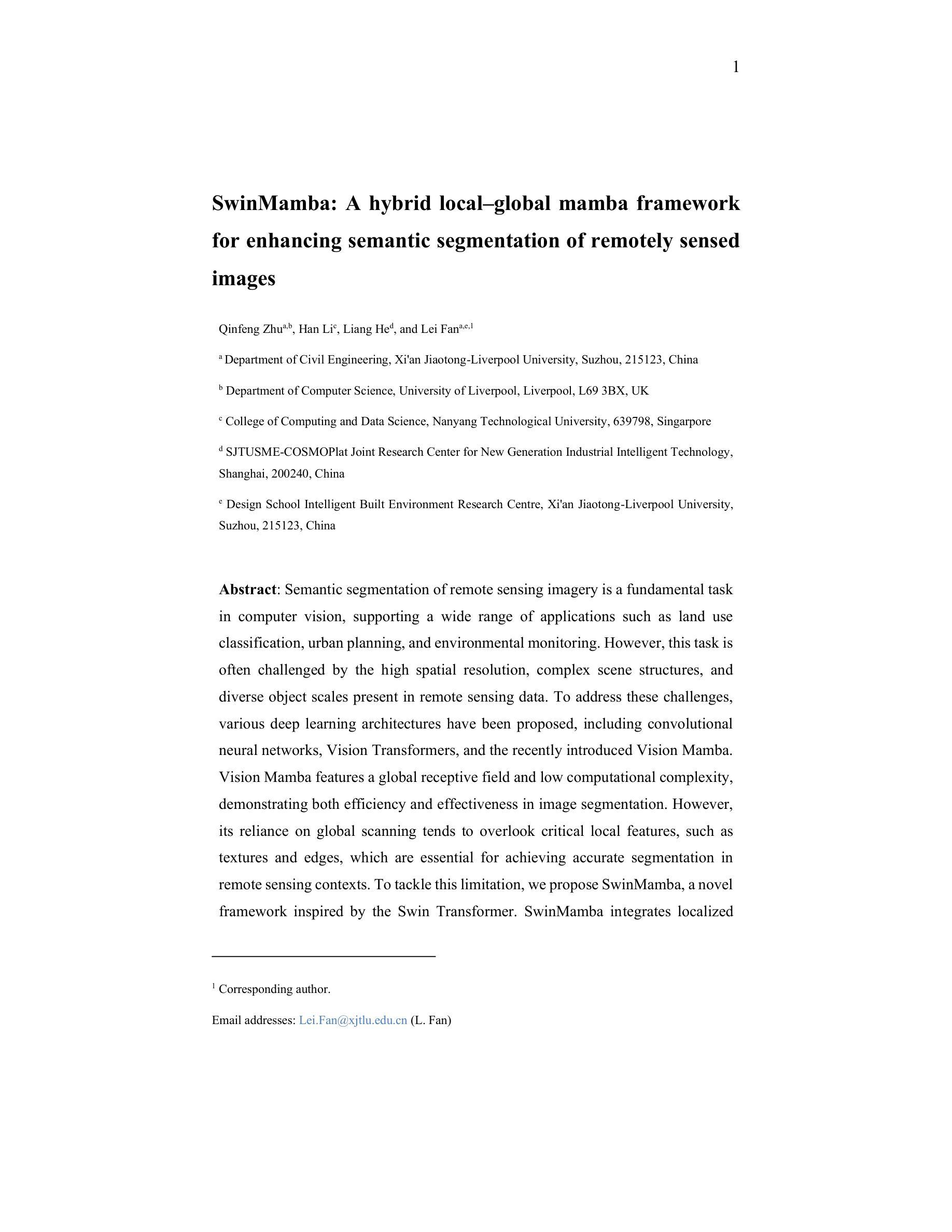 SwinMamba: A hybrid local-global mamba framework for enhancing semantic segmentation of remotely sensed images