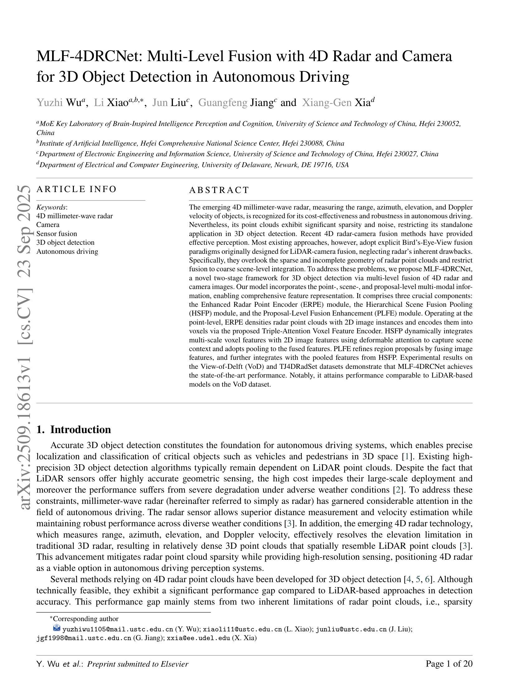 - MLF-4DRCNet是一个两阶段框架,通过多层次融合进行3D物体检测。