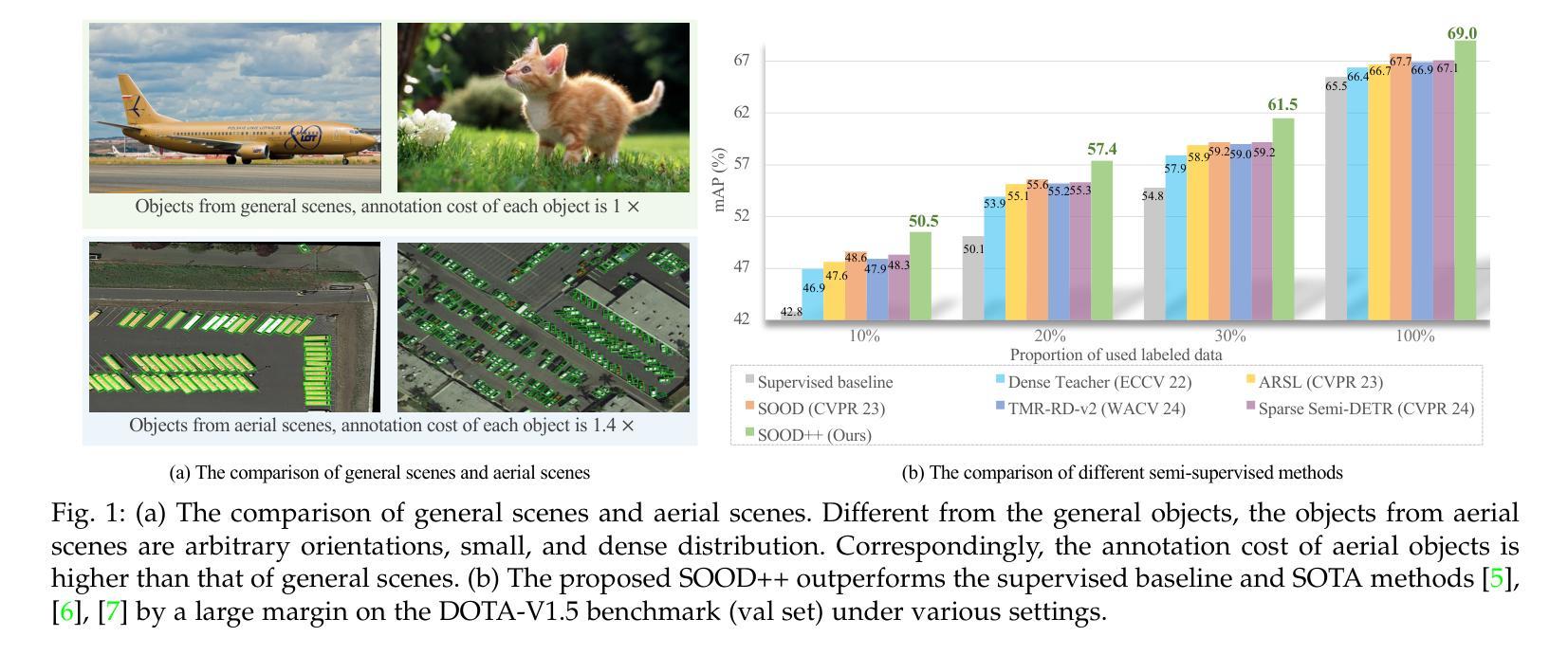 - 当前SSOD方法主要关注水平目标检测,对空中图像的定向目标检测研究不足。