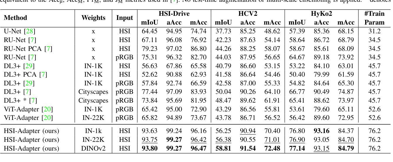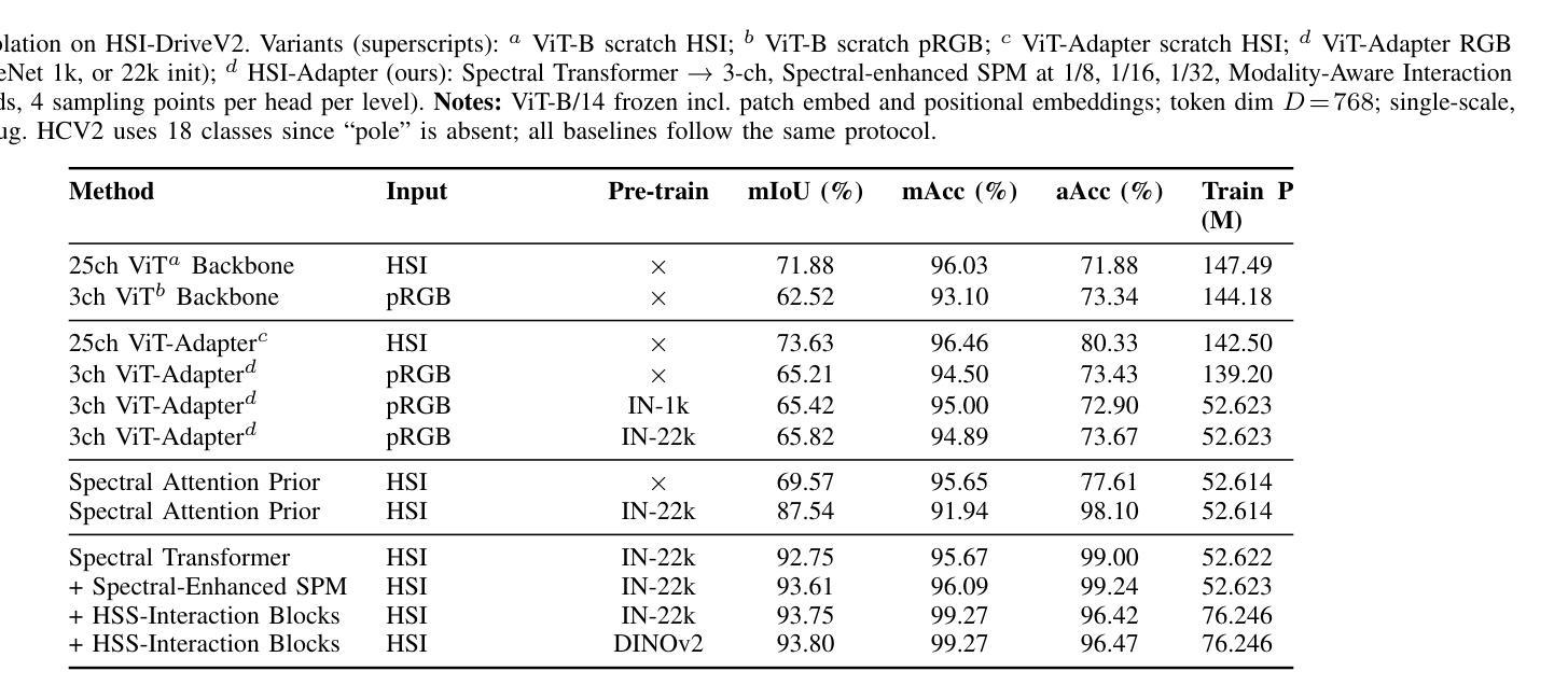 - 在三个自动驾驶数据集上的评估表明,该架构的语义分割性能达到最新水平,且直接使用HSI输入表现优于基于视觉和超光谱的分割方法。