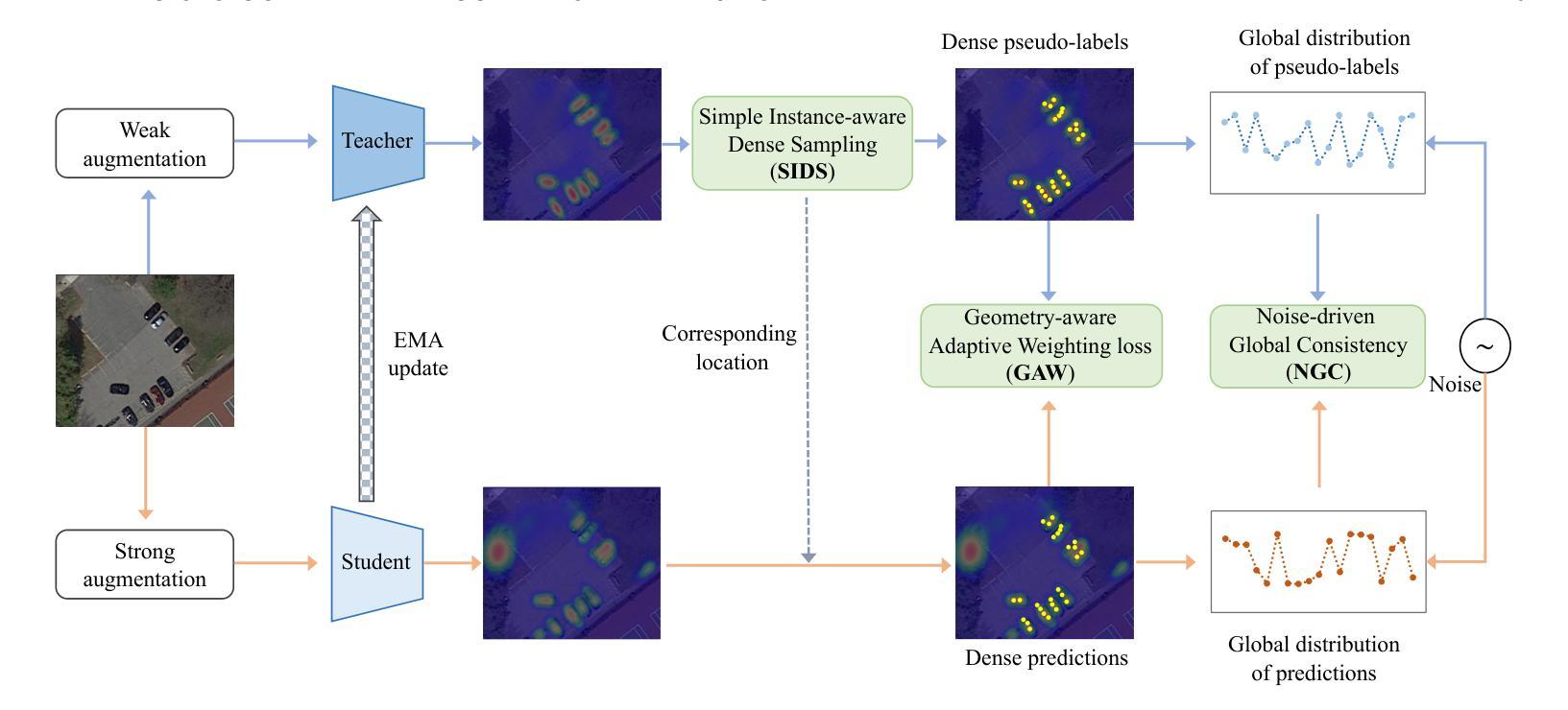 - GAW损失函数利用空中目标的精细几何信息动态调整伪标签和预测之间的权重。