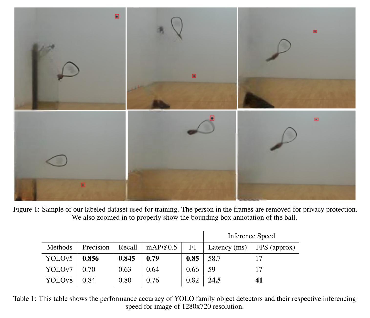 本文研究了快速移动的小物体(如球拍球)的跟踪问题,指出基于卡尔曼滤波的跟踪方法在处理不规则弹跳行为时性能下降。通过对五种先进的卡尔曼滤波跟踪方法进行比较评估,发现DeepOCSORT在跟踪误差方面表现最佳,但所有方法都存在跟踪漂移问题,表明需要针对快速移动的小物体跟踪应用开发专门的方法。