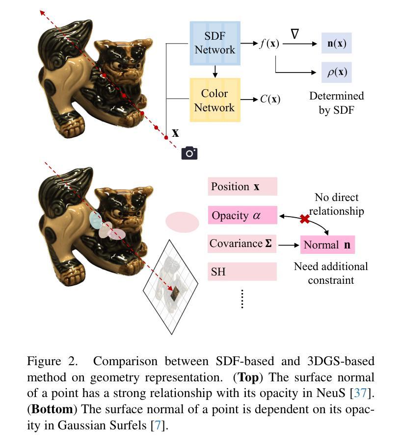 - 3DGS存在内存开销大的问题,依赖于高斯参数模拟视图相关效应和形状。