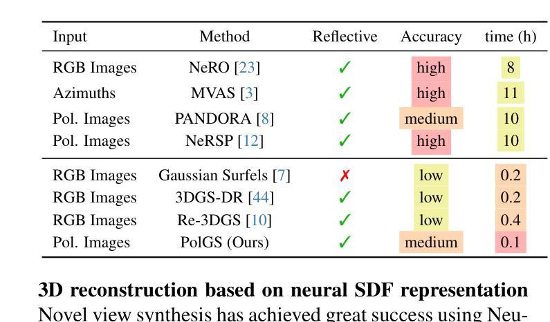 - PolGS模型可实现快速反射表面重建,处理时间仅需十分钟。