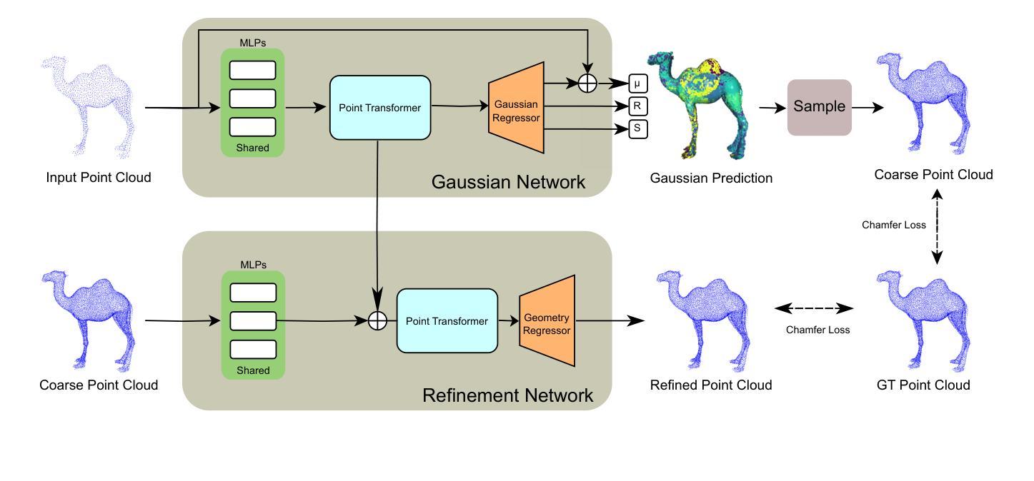 - PU-Gaussian网络解决了点云稀疏和噪声问题。